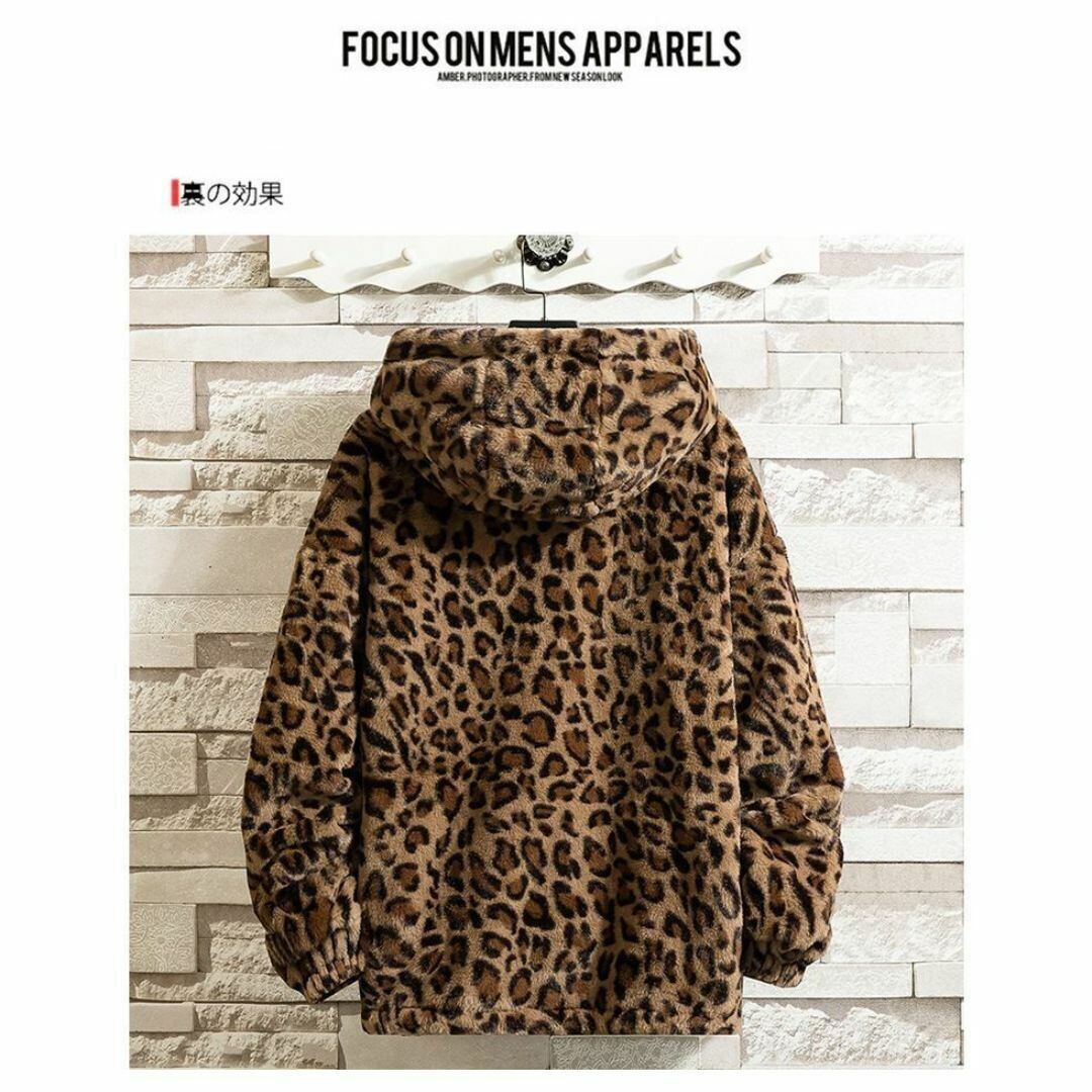 フリースジャケット ボア フード付き ヒョウ柄。洗練されたメンズファッションを演出。