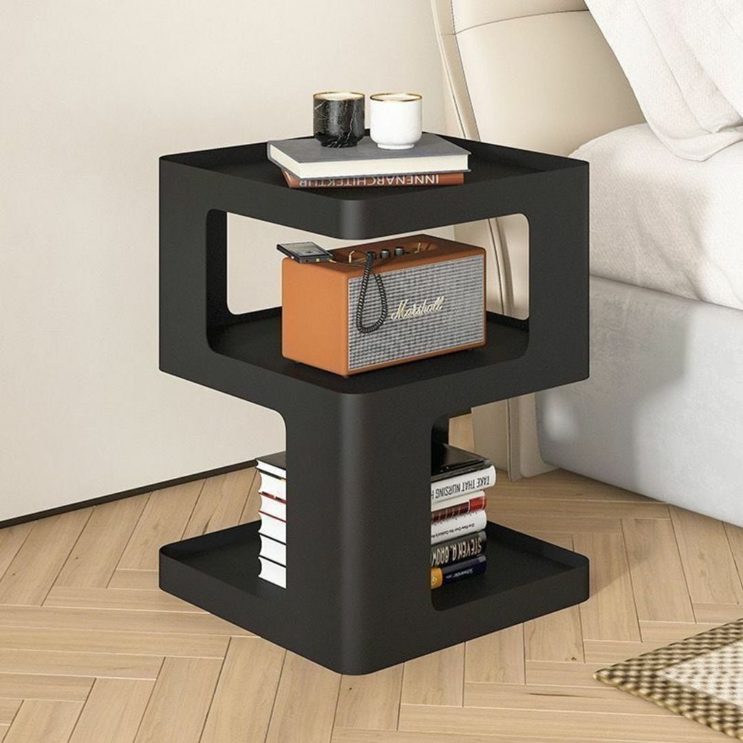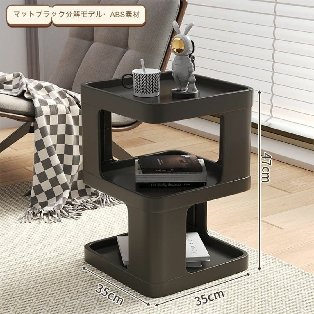 サイドテーブル コーヒーテーブル スタイリッシュ 中間と下に収納スぺース ブロック型 おしゃれ 黒 ブラック カラーバリエーション ポータブル 軽量 プラスチック リビング ダイニング 寝室 ソファ脇