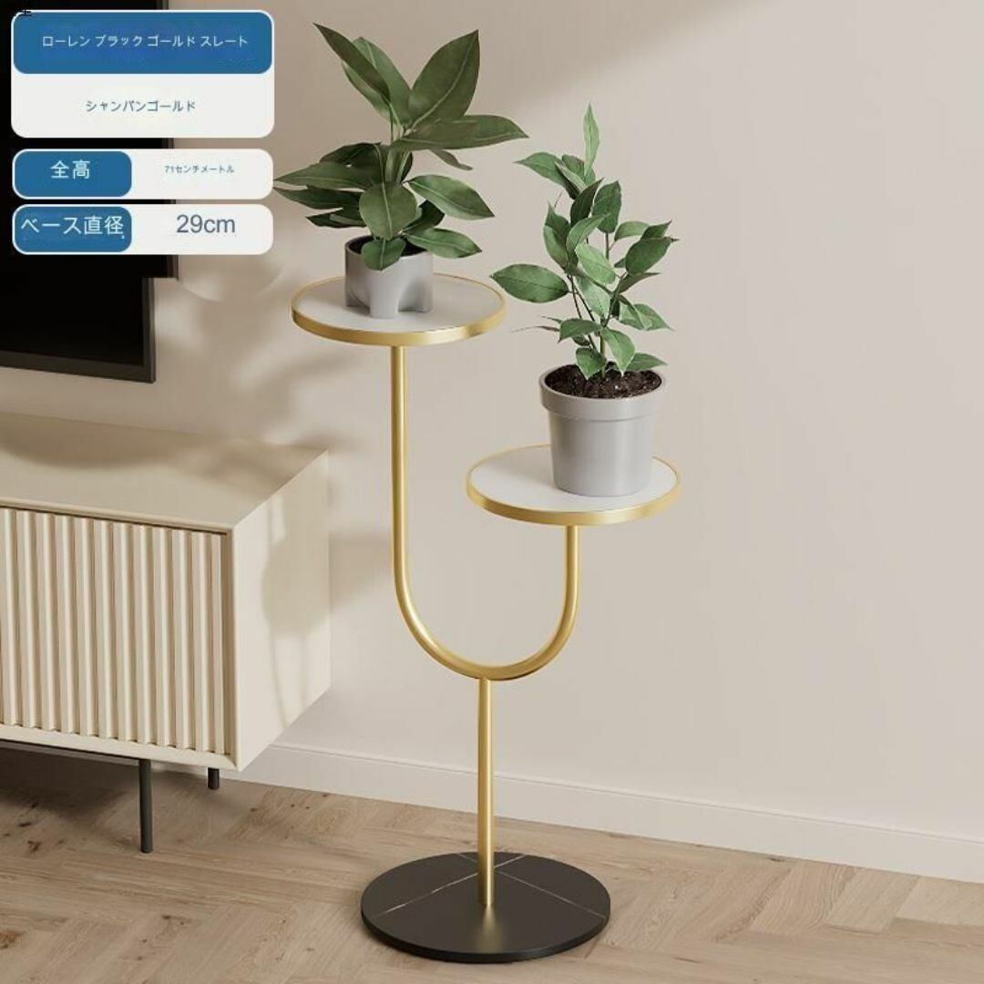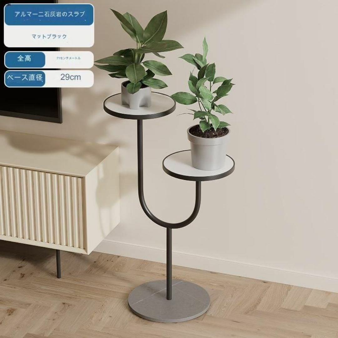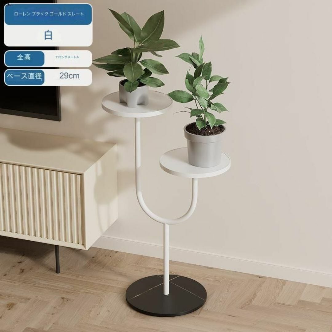 こちらは、シンプルで機能的なサイドテーブル兼フラワースタンドです。U字型の脚と2つの円型テーブルが特徴で、観葉植物や雑貨をおしゃれに飾ることができます。モダンで洗練されたデザインは、リビング、ダイニング、寝室、ソファ脇や玄関など、どんな空間にもマッチします。軽量でポータブルなため、簡単に移動可能。複数のカラーバリエーションがあり、インテリアに合わせて選べます。植物スタンドとしても、サイドテーブルとしても使える、多機能でおしゃれなアイテムです。