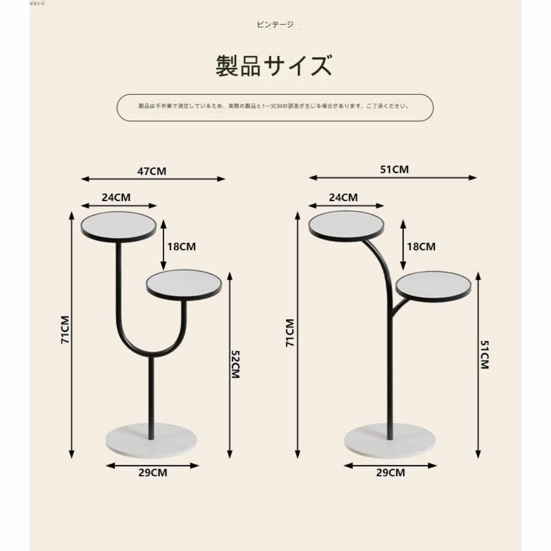 サイドテーブル フラワースタンド シンプル 観葉植物 枝分かれしたデザイン 2つの円型テーブル おしゃれ カラーバリエーション ポータブル リビング ダイニング 寝室 ソファ脇 玄関