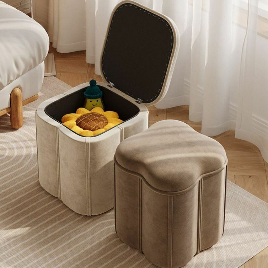 スツール 椅子 踏み台 シンプル 低反発クッション 正方形 クローバー型 内側収納 かわいい 簡単収納 おしゃれ 多機能 茶色 ブラウン 7色のカラーバリエーション 腰掛 高さ37cm 耐久性 足置き