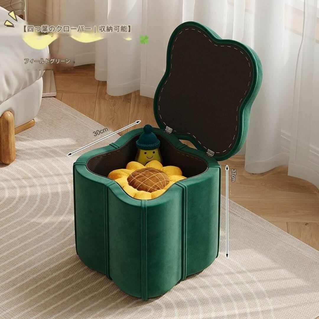 スツール 椅子 踏み台 シンプル 低反発クッション 正方形 クローバー型 内側収納 かわいい 簡単収納 おしゃれ 多機能 緑 グリーン 7色のカラーバリエーション 腰掛 高さ37cm 耐久性 足置き