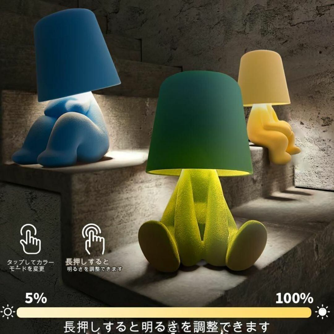 こちらは、かわいくて癒し効果のある人型デザインのテーブルランプです。タッチ式LEDライトで、明るさを手軽に調節でき、寝室やリビング、書斎などにぴったりのアイテムです。USB充電対応なので、コンセントに縛られず、どこでも気軽に使えます。