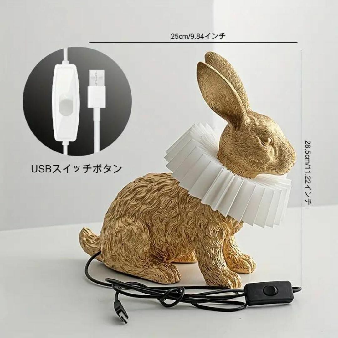 テーブルランプ デスクライト インテリアライト ランプシェード ウサギ バニー 座り姿 ゴールド カラーバリエーション 動物 リアル かわいい 首元が光る 癒し USB充電 おしゃれ 寝室 リビング 書斎
