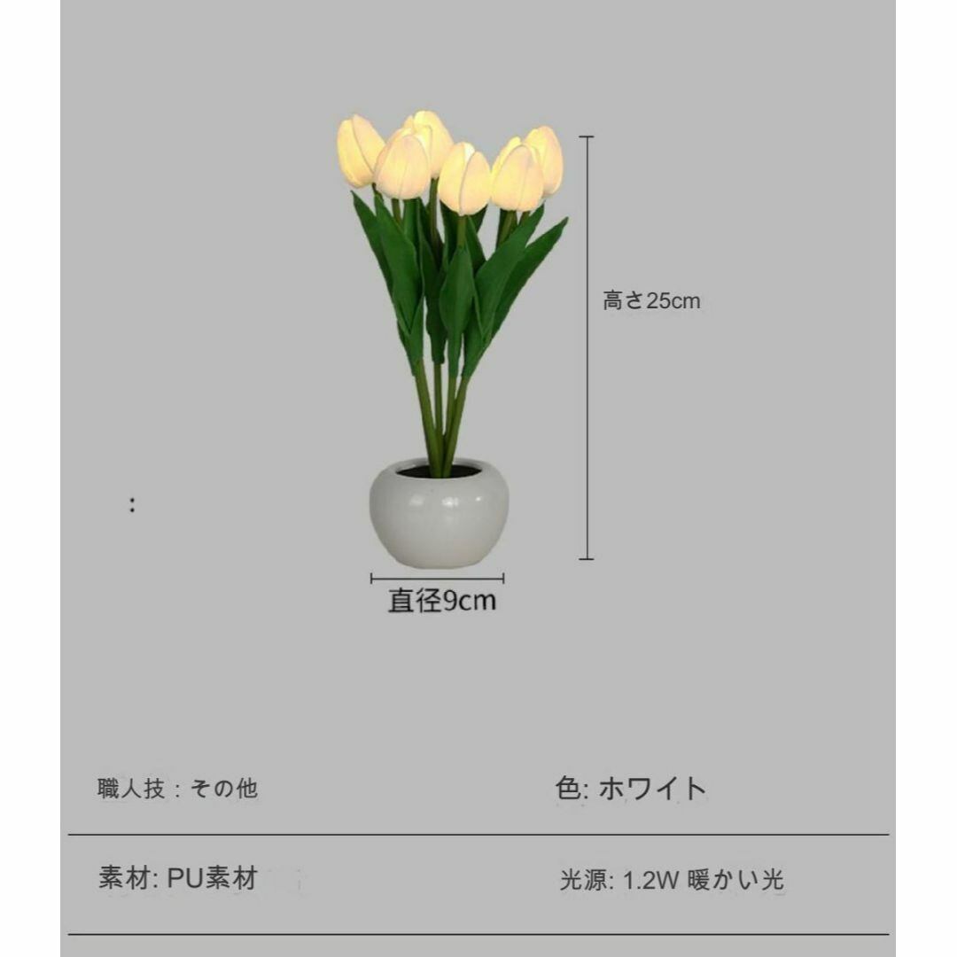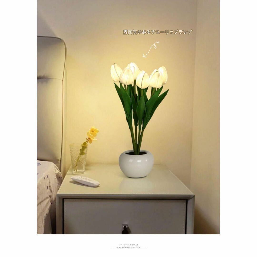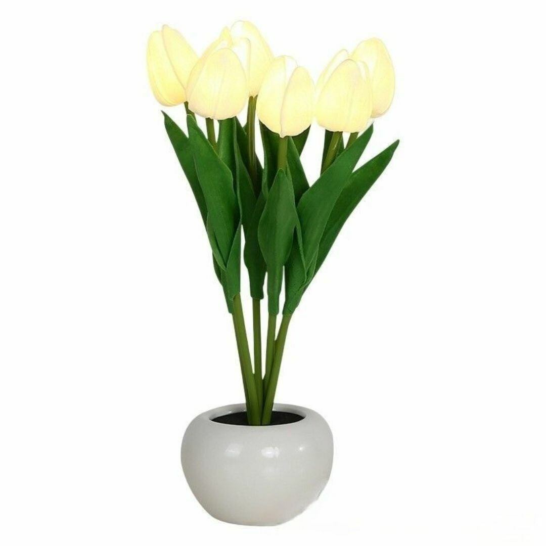 テーブルランプ デスクライト インテリアライト 鉢植え チューリップ リアル 6本 ホワイト カラーバリエーション おしゃれ かわいい LED 癒し USB充電 寝室 リビング 書斎