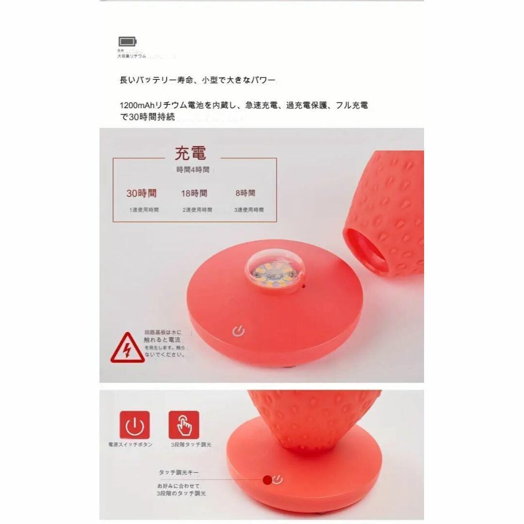 テーブルランプ デスクライト インテリアライト いちご リアル シリコン素材 ピンク カラーバリエーション おしゃれ かわいい LED タッチ式 癒し USB充電 寝室 リビング 書斎
