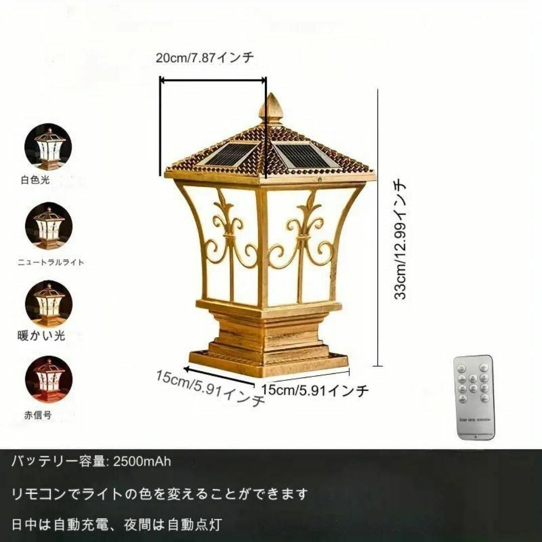 屋外照明 リモコン調整 オートライトアップ カンテラ おしゃれ スタイリッシュ ブロンズ カラーバリエーション 和風 中華風 ソーラー充電 LED ガーデン装飾 幻想的