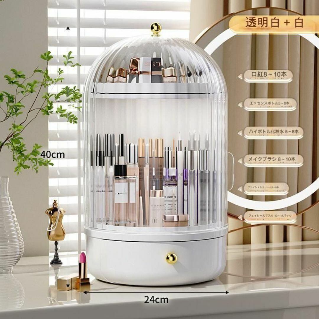 化粧品収納 メイク収納 メイクボックス 化粧品収納ボックス 蓋付き 引き出し付き スキンケア収納 大容量 クリア 透明 ベージュ シンプル きれい コンパクト 360度回転