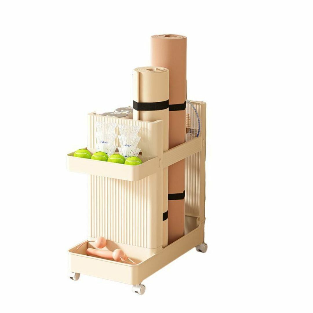 こちらは、キャスター付きのカート式収納ボックスで、スポーツ用品やおもちゃの収納に最適な多機能デザインです。ベージュとブラックのカラーバリエーションがあり、玄関や屋外のインテリアにも溶け込みやすいおしゃれな見た目が魅力。縦型収納で隙間を有効活用できるため、省スペースでもしっかり収納できます。耐久性が高く、持ち運びが簡単なキャスター付きなので、収納場所を選ばずに使えます。スポーツやアウトドア用品をすっきりと整理したい方におすすめのアイテムです。