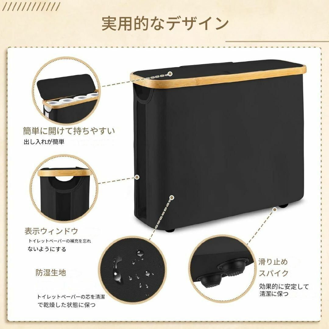 トイレットペーパーホルダー 折りたたみ 収納バッグ 多機能 ブラック