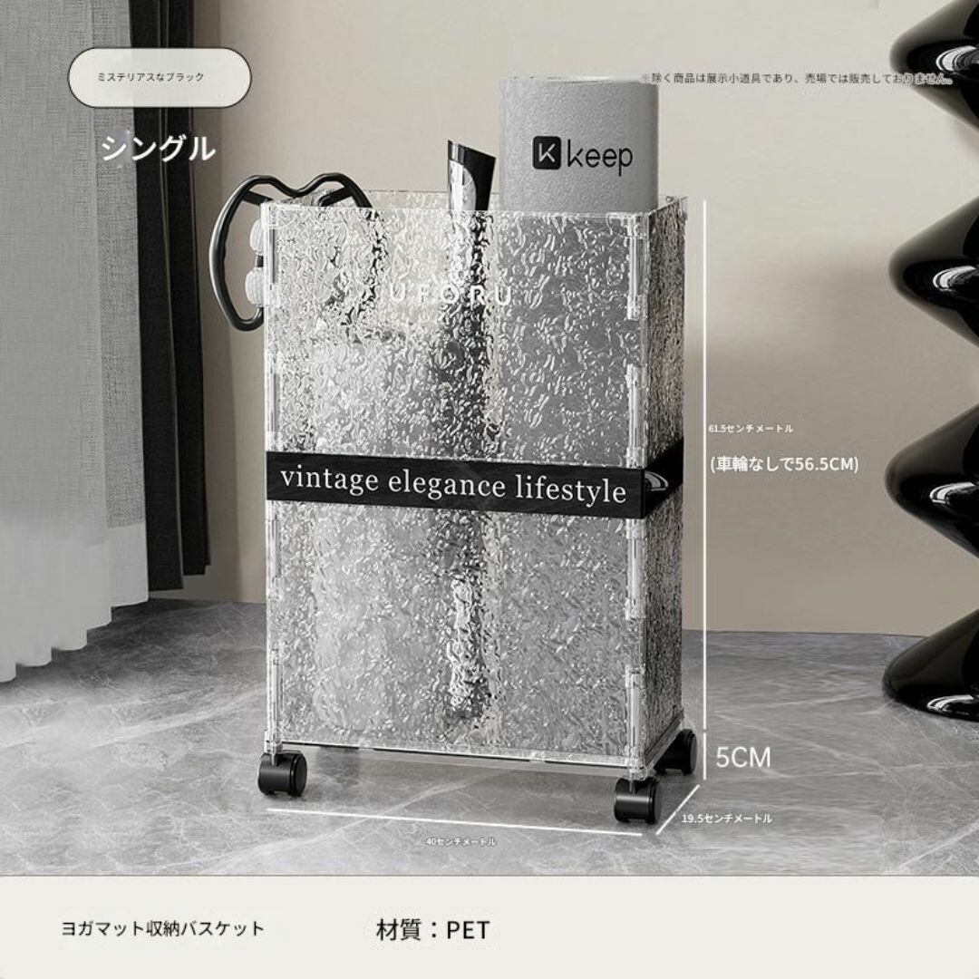 収納ボックス ヨガマット ストレージ カート式 キャスター付き 半透明 多機能 便利 ブラックの帯 おしゃれ 60L コンテナ 長方形 室内 隙間収納