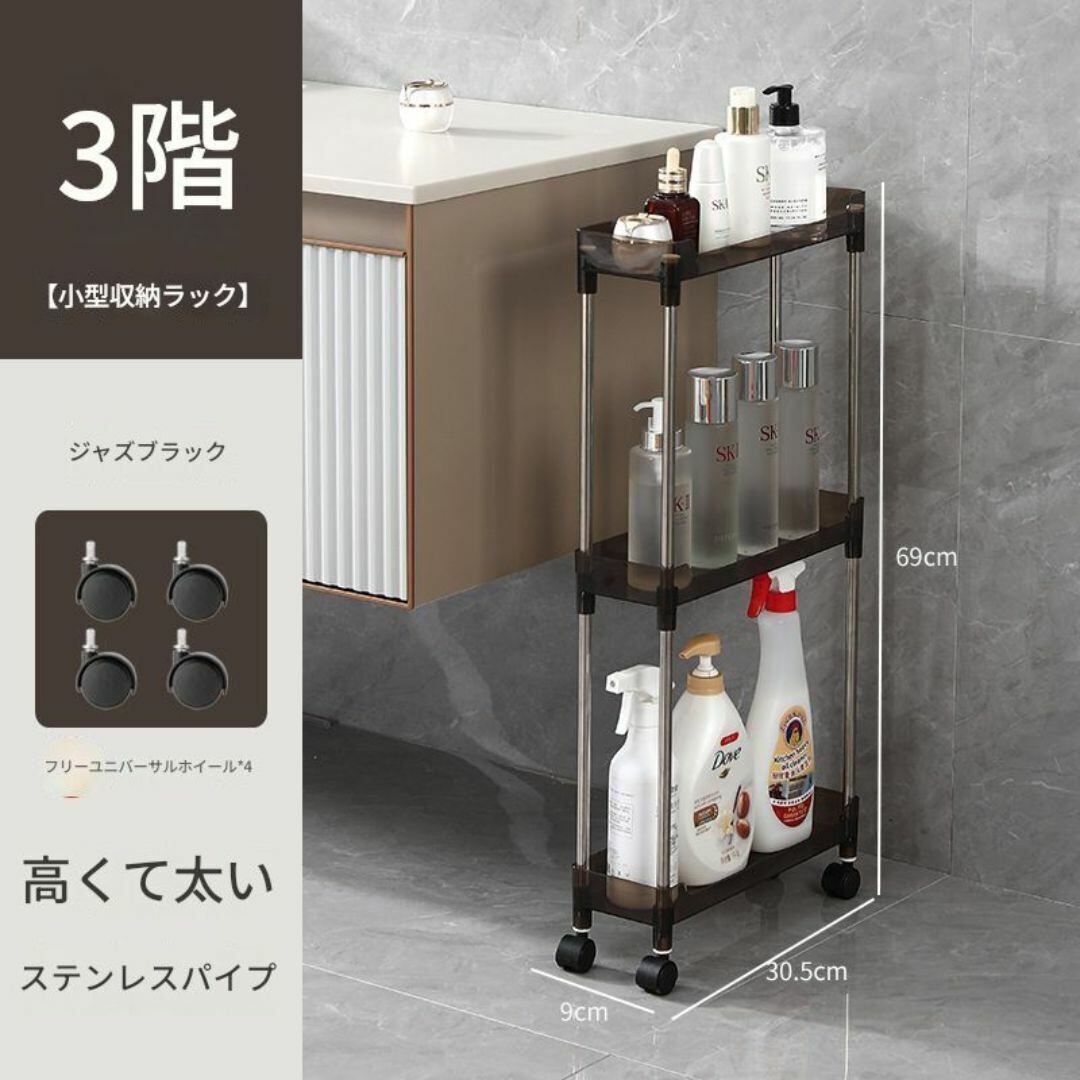 収納ボックス ストレージ カート式 キャスター付き 3段棚 隙間収納 多機能 便利 カラーバリエーション ブラック おしゃれ 室内 キッチン バスルーム