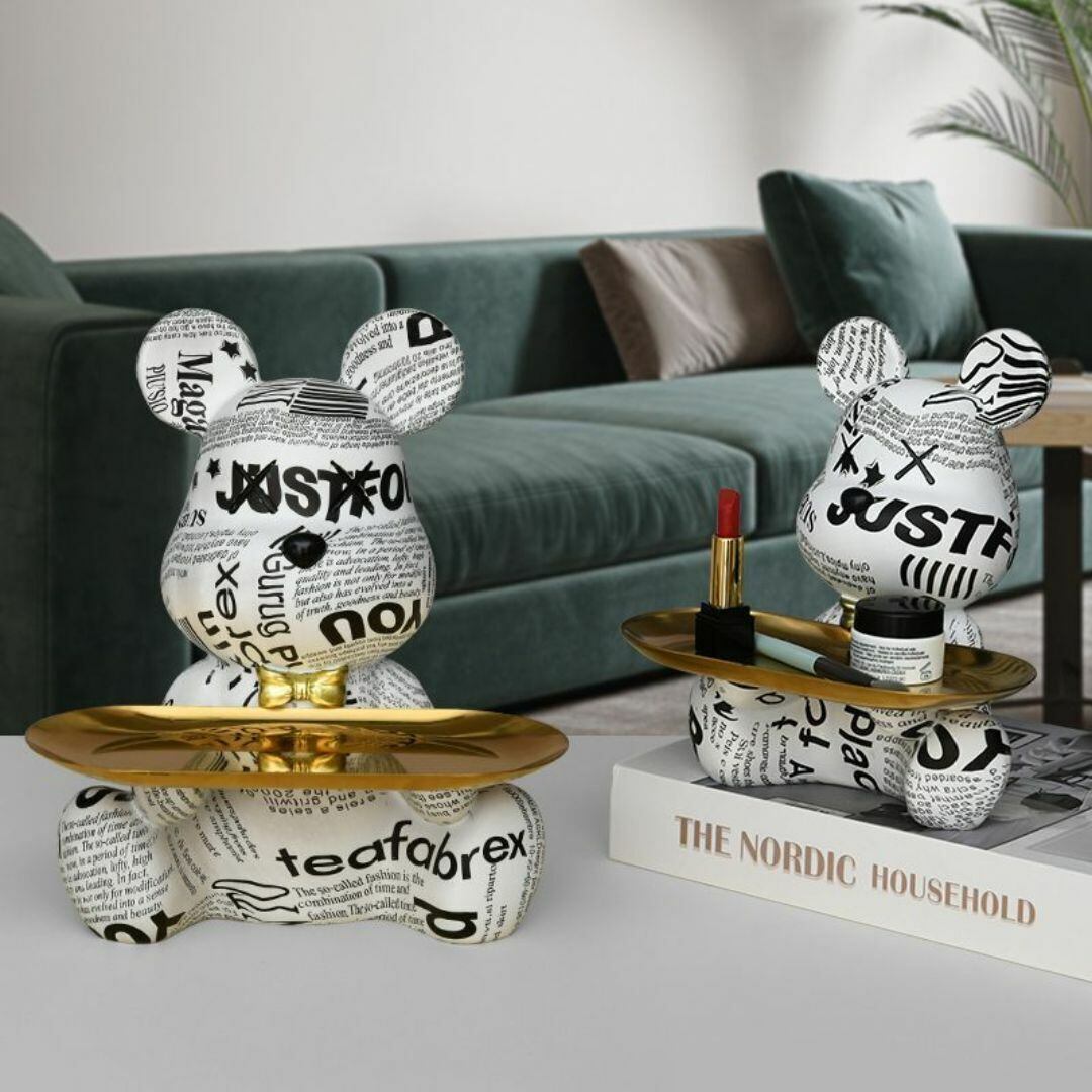 小物入れ 貯金箱 金色のトレイを持ったクマ 動物 取り出し口無し クリエイティブなカラーバリエーション かわいい 置物 プレゼント ギフト リビング 寝室 キーケース おしゃれ