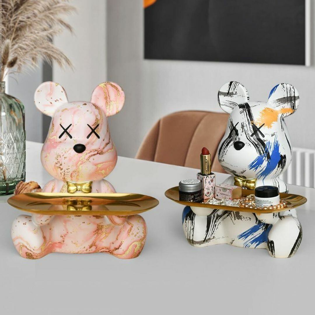 小物入れ 貯金箱 金色のトレイを持ったクマ 動物 取り出し口無し クリエイティブなカラーバリエーション かわいい 置物 プレゼント ギフト リビング 寝室 キーケース おしゃれ
