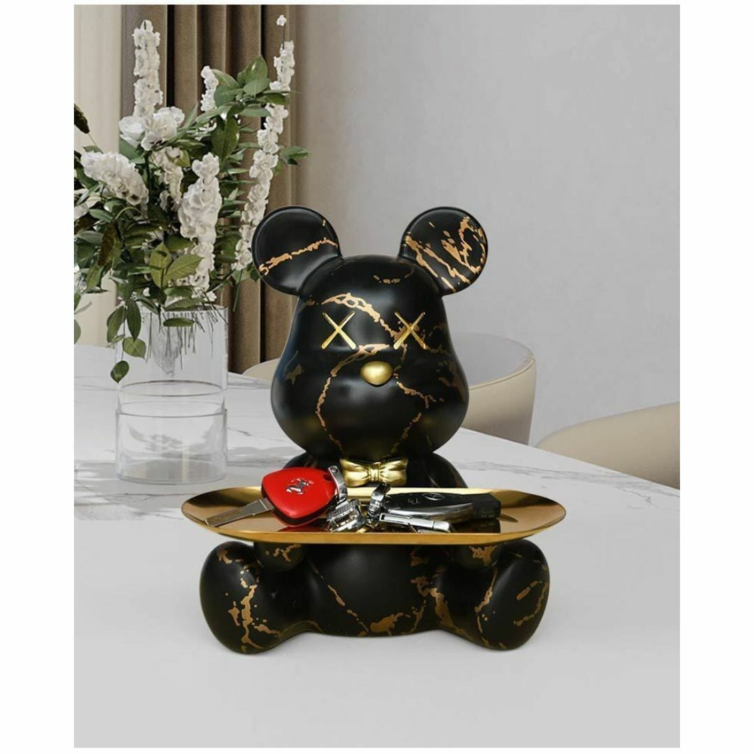小物入れ 貯金箱 金色のトレイを持ったクマ 動物 取り出し口無し クリエイティブなカラーバリエーション かわいい 置物 プレゼント ギフト リビング 寝室 キーケース おしゃれ