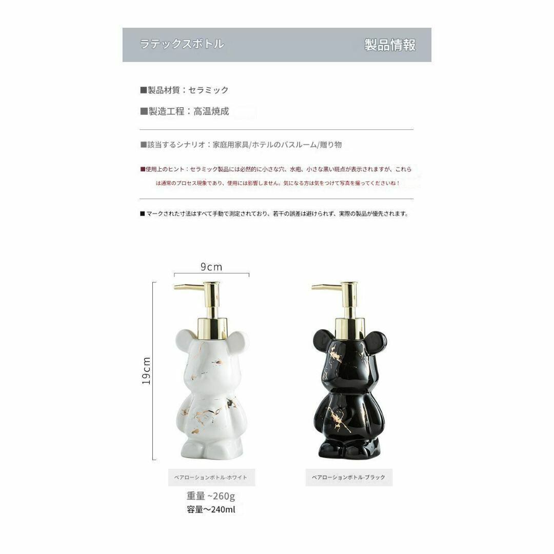 化粧ボトル コスメボトル ベアー 乳液ボトル コスメティックアイテム 黒 ブラック カラーバリエーション おしゃれ 多目的 かわいい 犬 ソープボトル クマ 240ml