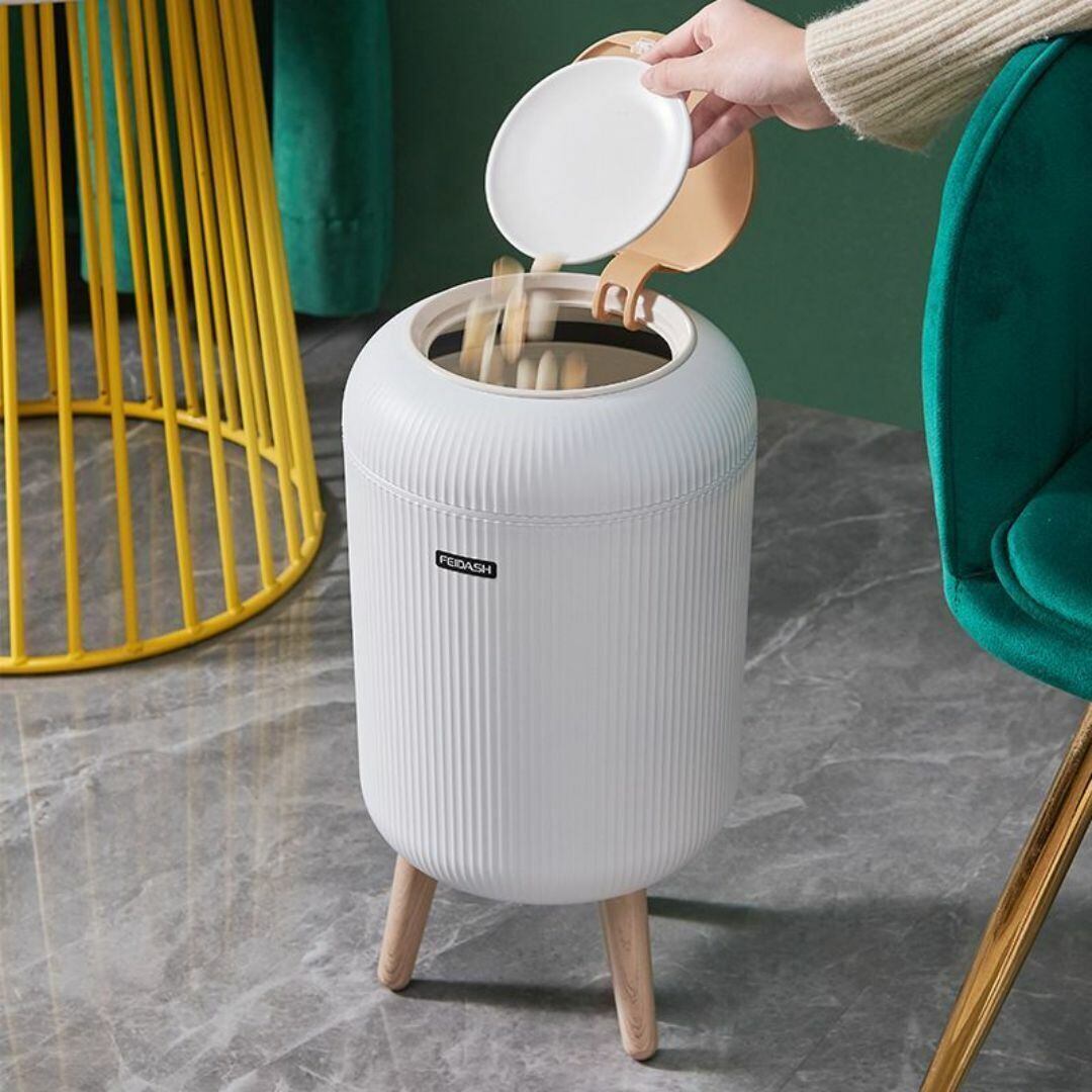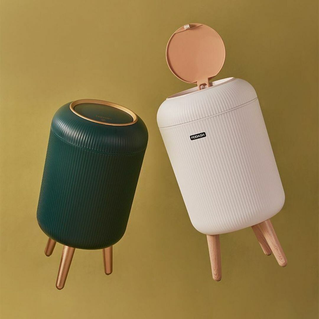 こちらのゴミ箱は、タッチオープン式で使いやすく、ラウンド型のデザインが特徴的な三脚付きトラッシュボックスです。10Lの容量で、コンパクトながらも十分な収納力を備え、リビングやトイレ、バスルームにぴったりのサイズ感。ホワイトとグリーンの2色展開で、おしゃれでかわいいカラーバリエーションがインテリアに映えます。防水仕様なので水回りでも安心して使用可能。多機能で便利なこのアイテムは、日常使いにぴったりのスタイリッシュなゴミ箱です。