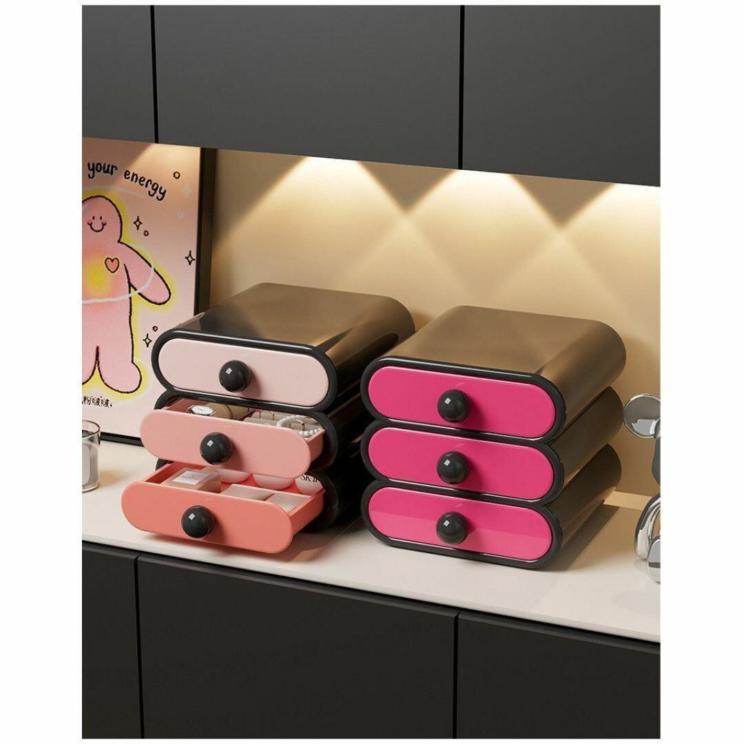 小物入れ 引き出し コスメボックス 収納ボックス かわいい おしゃれ 滑り止め付き 3つのカラーバリエーション 丸い取っ手 3段 丸みを帯びた形 多機能