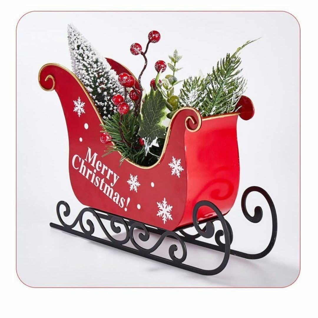 置物 クリスマスデコレーション 赤いソリ 木や花を乗せている オーナメント 装飾 おしゃれ かわいい ロマンチック パーティ リビング 玄関 プレゼント ギフト 装飾