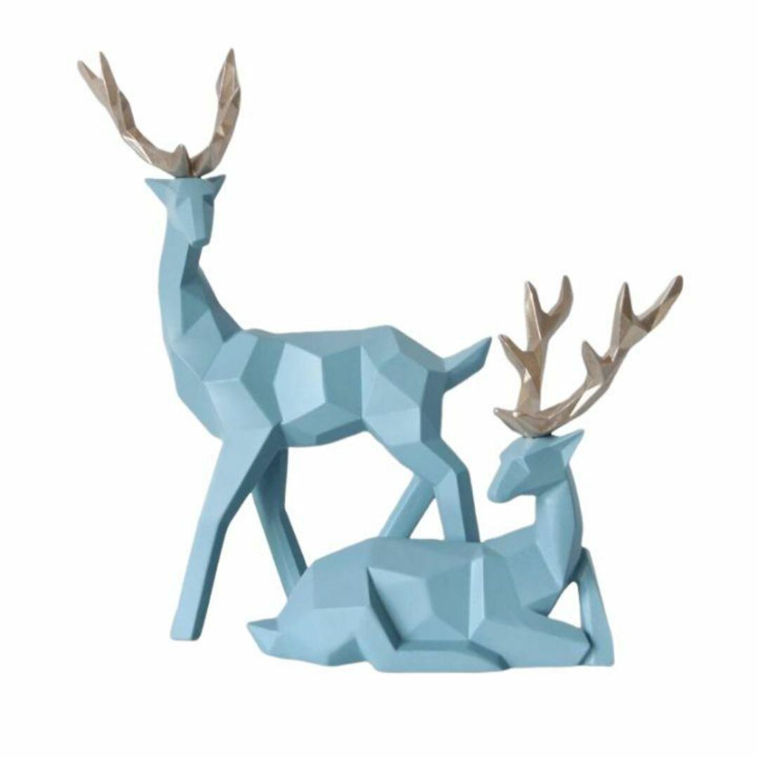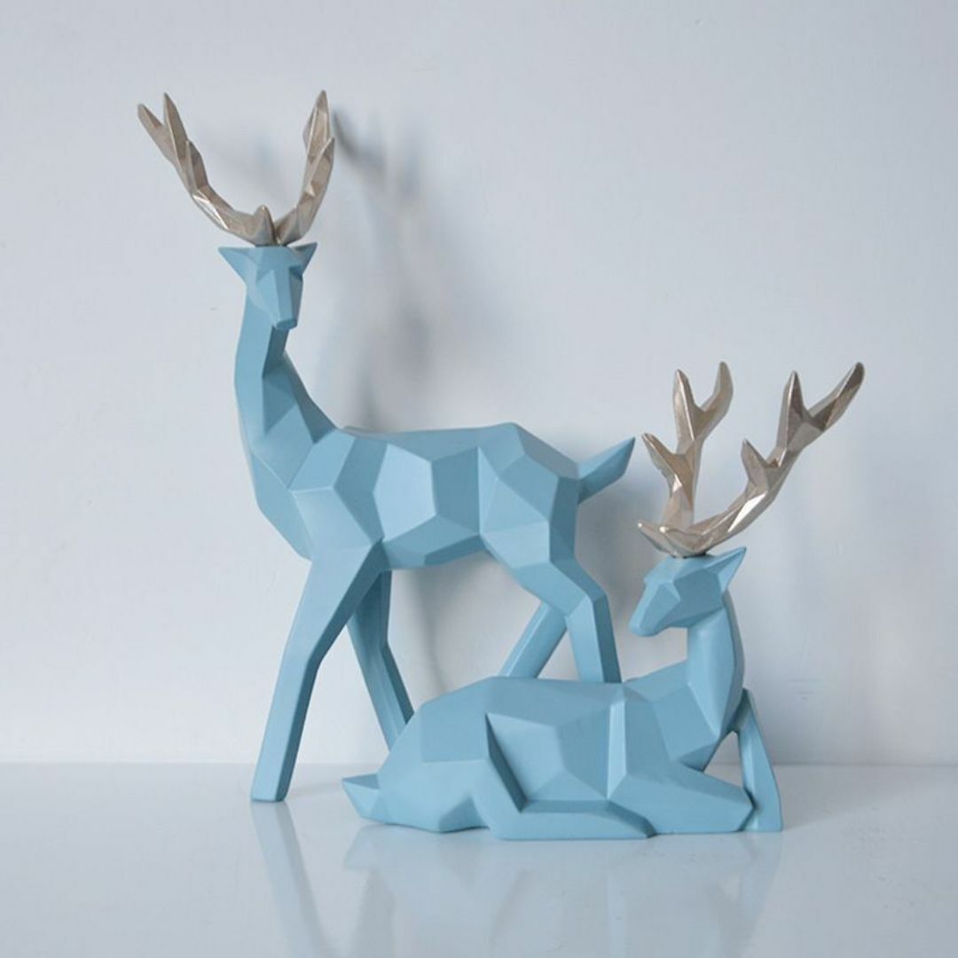 置物 オブジェ 金の角を持った2匹の鹿 立ち姿 座り姿 2匹セット ブルー カラーバリエーション かわいい おしゃれ 玄関 北欧 モダン 繊細 リビング 樹脂 装飾 プレゼント ギフト オーナメント