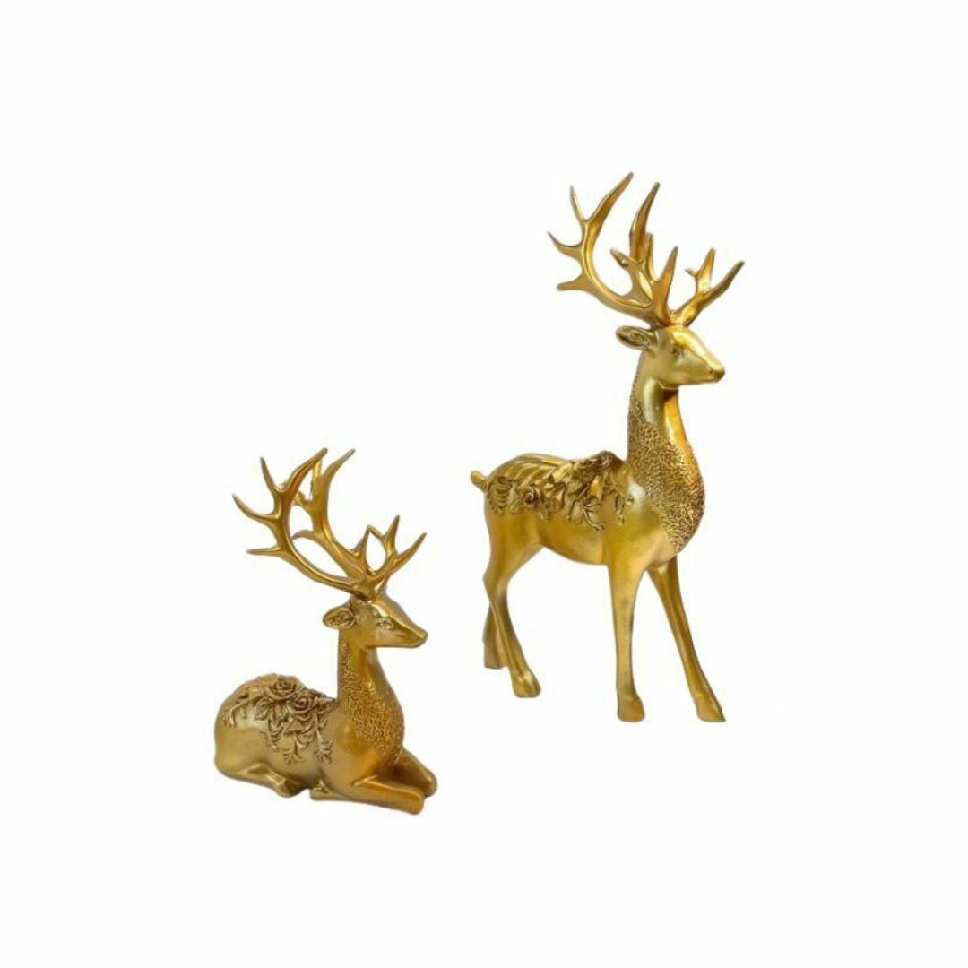 置物 オブジェ ゴージャスな装飾をまとった鹿 立ち姿 座り姿 2匹セット ゴールド カラーバリエーション おしゃれ 玄関 モダン 繊細 リビング 樹脂 装飾 プレゼント ギフト オーナメント