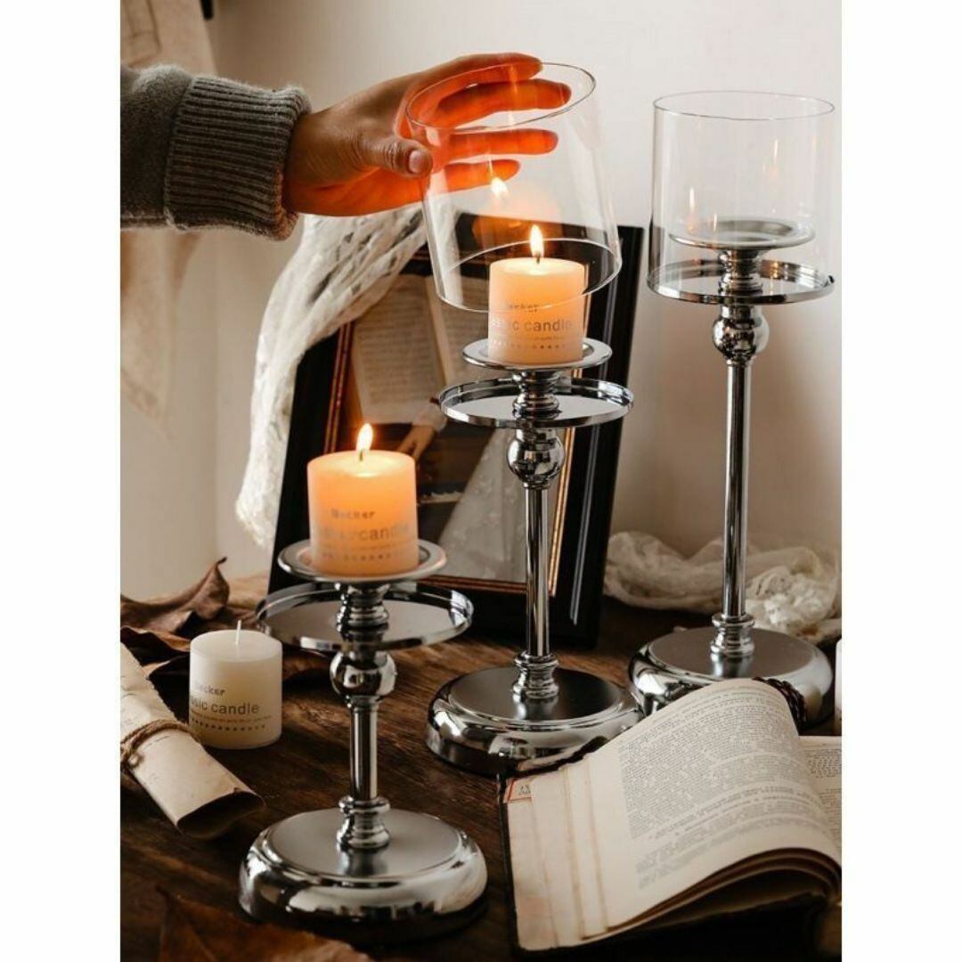 こちらの燭台セットは、ロマンチックな雰囲気を演出するキャンドルライト用のアイテムです。3つの異なるサイズがセットになっており、ゴールドとシルバーの2つのカラーバリエーションからお選びいただけます。ガラスの仕切りが優雅で高級感を引き立て、おしゃれなデザインが特徴です。リビングや寝室、ディナーやパーティの装飾に最適で、特別なひとときを華やかに彩ります。洗練されたデザインはプレゼントにもおすすめで、空間に温かみとスタイルをもたらします。