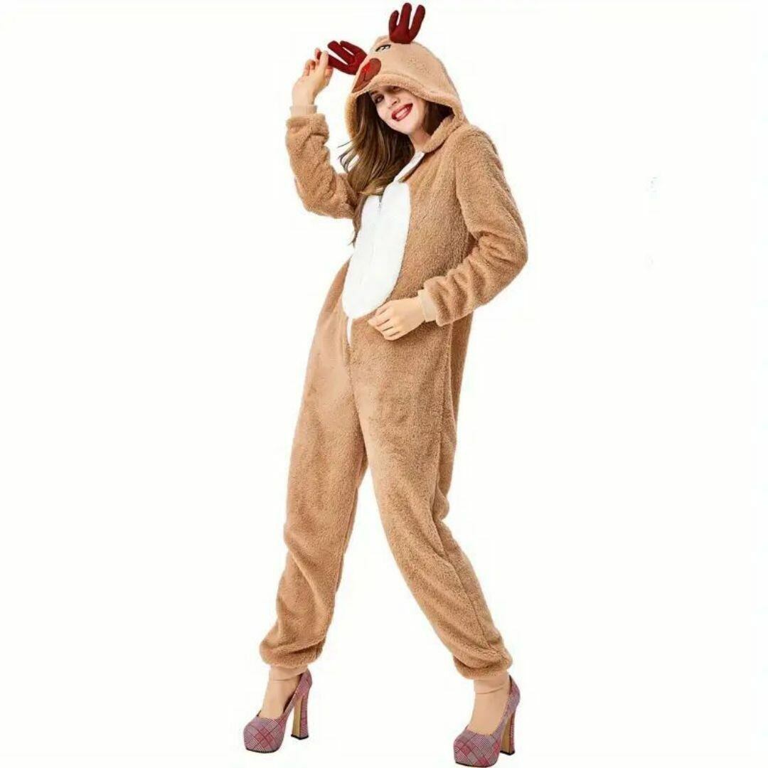 こちらのクリスマスコスプレ衣装は、トナカイをモチーフにした全身タイプのデザインが特徴です。柔らかなベージュカラーで、かわいらしく仕上げられています。角付きフードがポイントで、クリスマスムードを存分に楽しめるアイテムです。ゆったりとしたシルエットで動きやすく、パーティやイベントだけでなく寝巻やパジャマとしても使用可能。快適な着心地とおしゃれさを兼ね備えた、女性にぴったりのクリスマスコスチュームです。