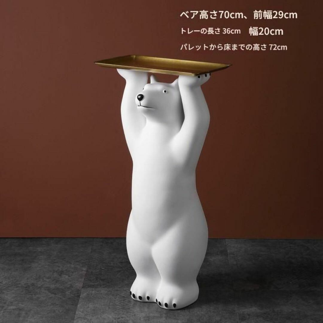 置物 オブジェ サイドテーブル 金の皿を持った大きなシロクマ ホワイト 3つのスタイル 手を上に掲げる おしゃれ 冬 玄関 リビング 樹脂 かわいい レジン 装飾 プレゼント ギフト 癒し 高さ70cm前後