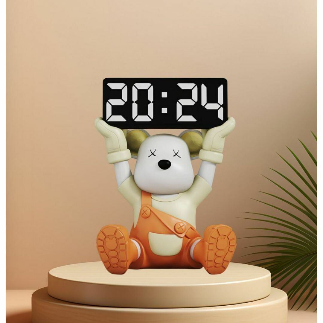 置時計 デジタル時計 置物 かわいい バタンキューしたクマ おしゃれ カラーバリエーション オレンジ リビング 寝室 インテリア モダン 樹脂