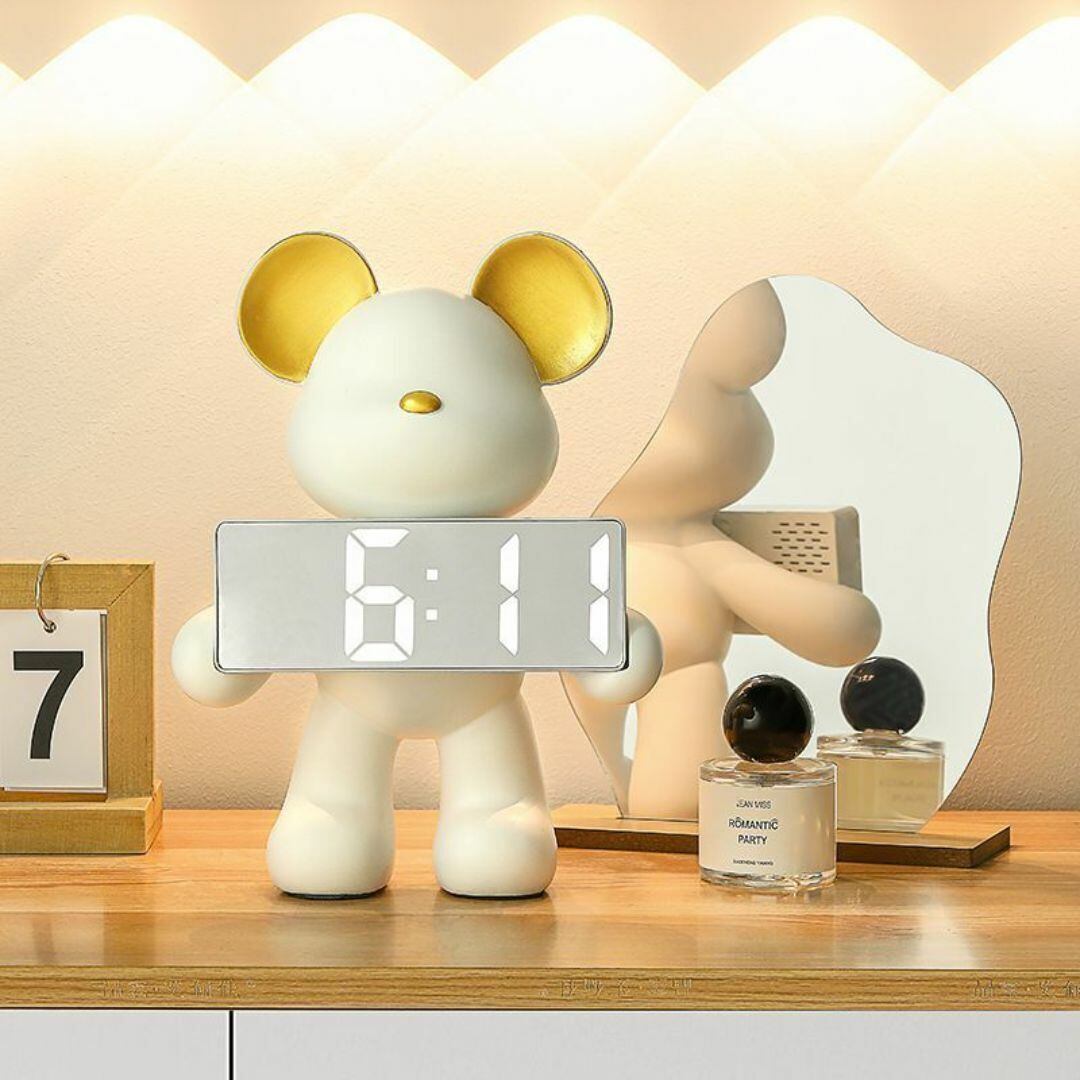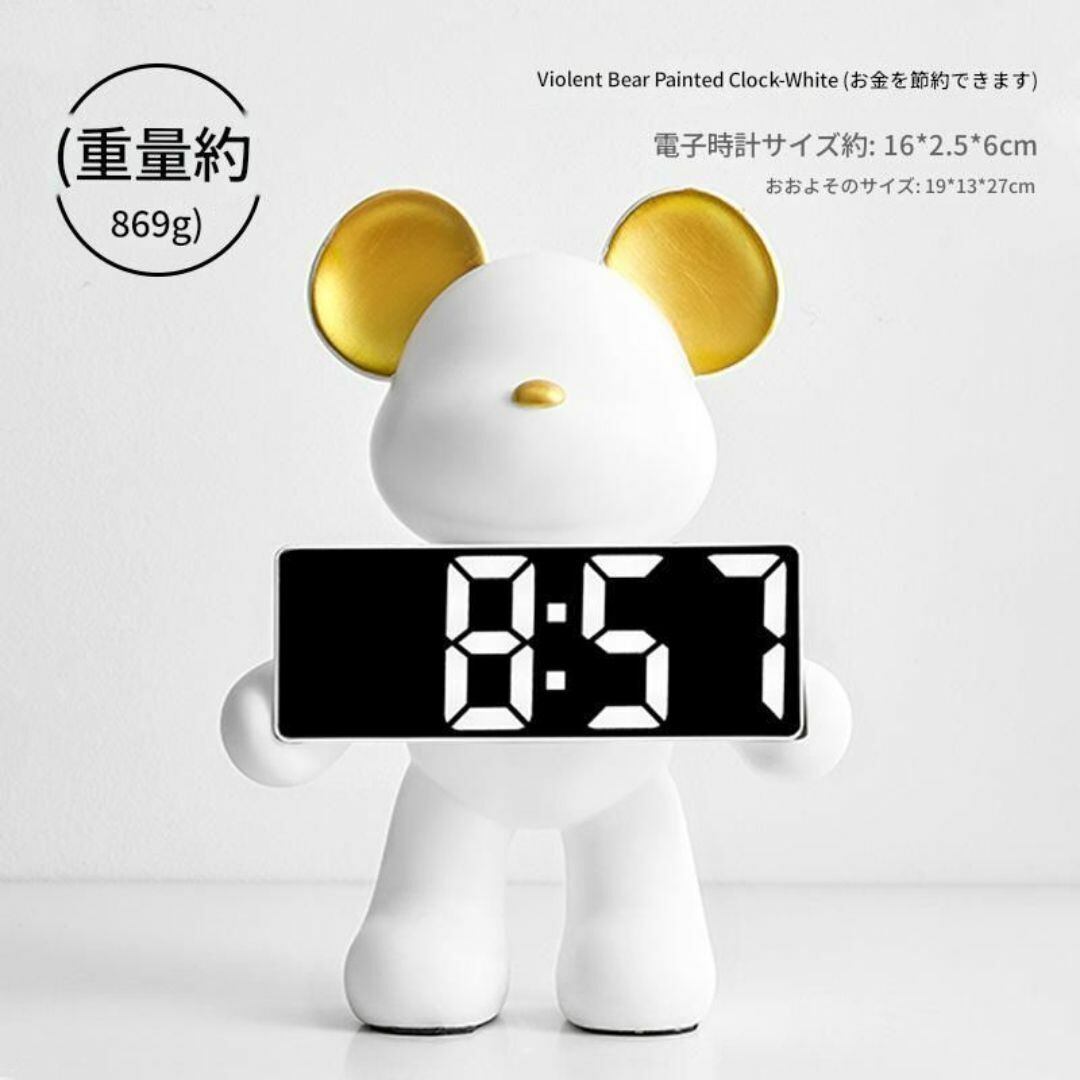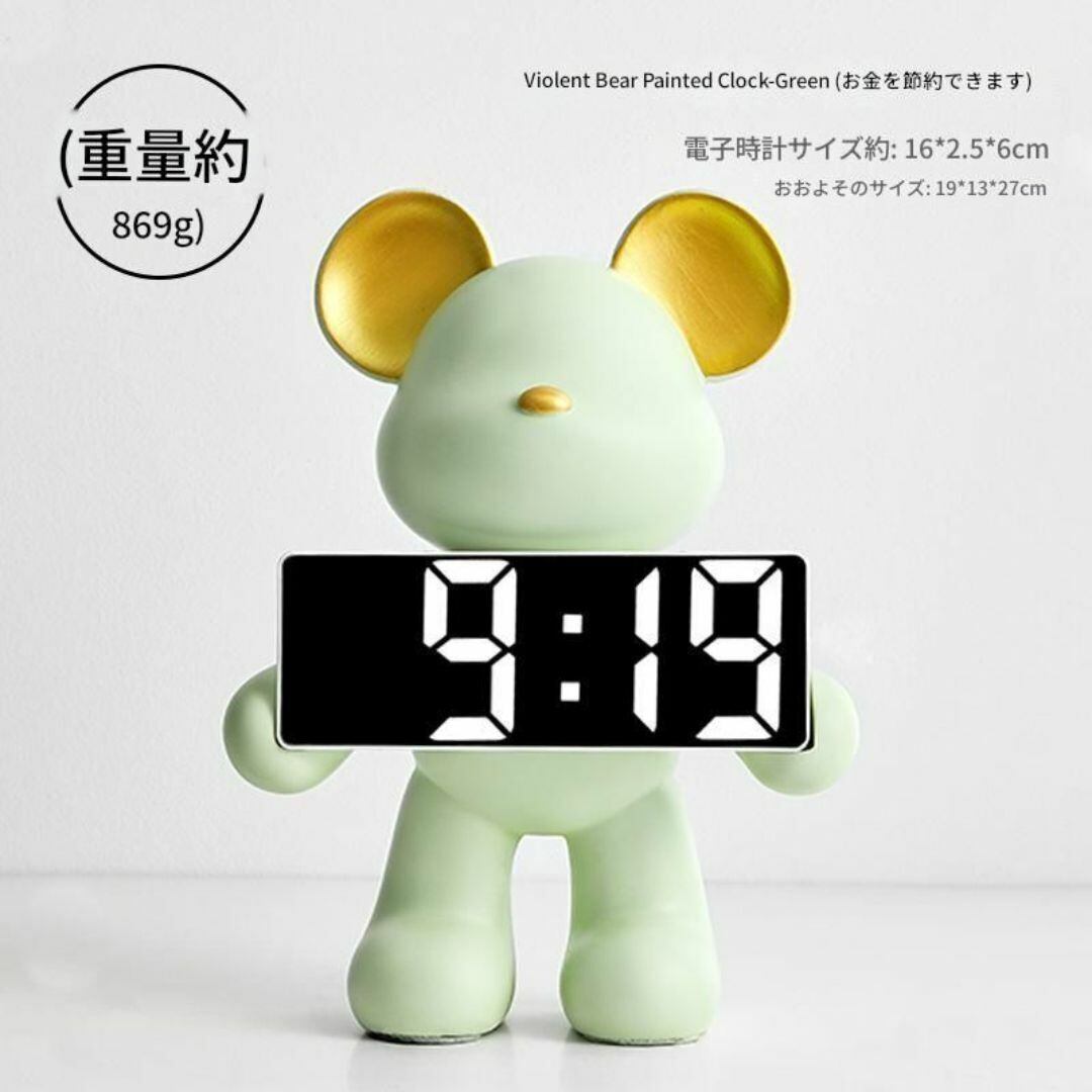 置時計 デジタル時計 置物 かわいい 時計を持ったクマ 動物 おしゃれ カラーバリエーション ホワイト オレンジ グリーン イエロー リビング 寝室 インテリア モダン 樹脂 貯金箱