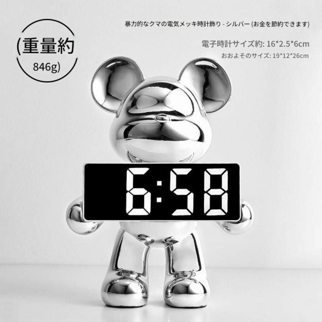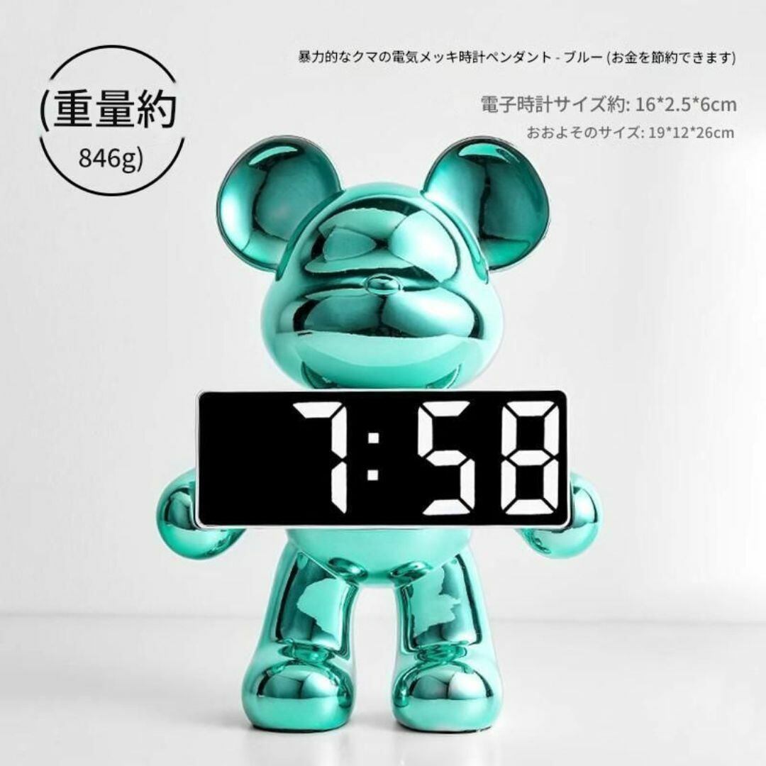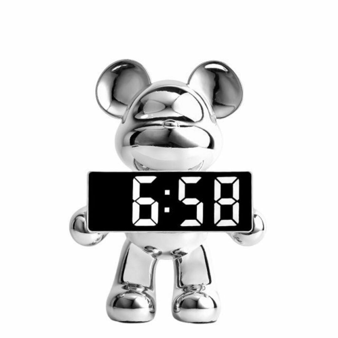 置時計 デジタル時計 置物 かわいい 時計を持ったクマ 動物 おしゃれ カラーバリエーション メタルカラー ピンク ゴールド ブルー シルバー リビング 寝室 インテリア モダン 樹脂 貯金箱 アラーム機能