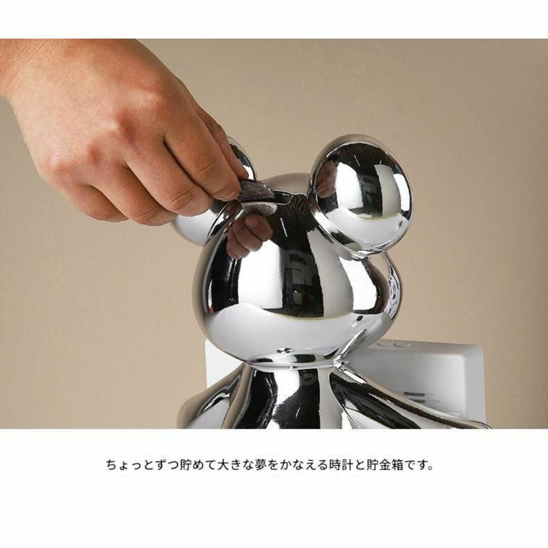こちらの置時計は、時計を持ったクマのデザインが特徴の多機能デジタル時計です。ピンク、ゴールド、ブルー、シルバーのメタルカラーが揃っており、どの色も高級感とかわいらしさを兼ね備えています。樹脂素材で軽量ながら、モダンで洗練された雰囲気がインテリアにぴったり。貯金箱の機能も搭載されており、実用性も抜群です。さらにアラーム機能が付いているため、リビングや寝室での生活をサポートします。おしゃれで実用的なプレゼントにもおすすめです。