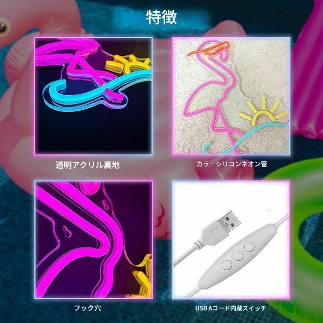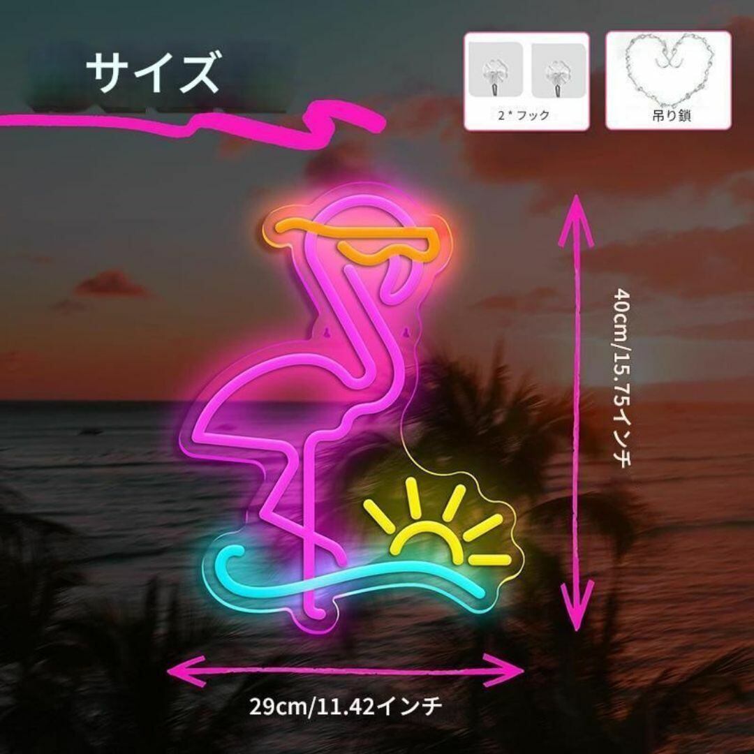 ネオンライト ピンクのフラミンゴ かわいい 派手 カラフル サマーイメージ 壁掛け 発光サイン LED 壁装飾 おしゃれ インテリア 照明 バー 屋内 趣味 ネオンサイン USB給電 電源スイッチあり