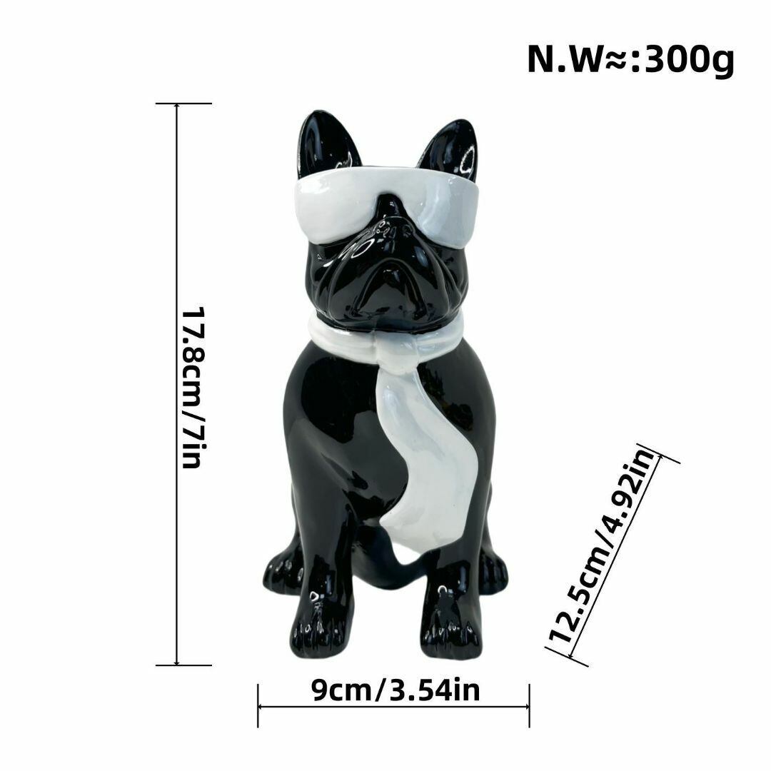 こちらの置物は、マフラーを巻いてサングラスをかけたブルドッグをモチーフにしたユニークなオブジェです。おすわり姿がかわいらしく、動物好きにはたまらないデザインです。黒、白、銅のカラーバリエーションからお選びいただけ、どの色もおしゃれでモダンな印象を与えます。玄関やリビングのインテリアとしてはもちろん、プレゼントやギフトにも最適な一品です。樹脂製で丈夫かつ繊細なつくりが魅力で、空間に個性的なアクセントを加えます。