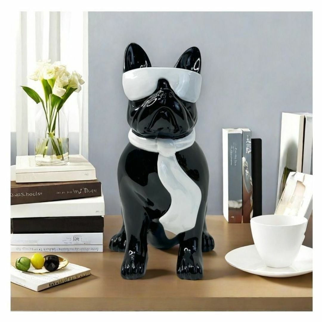 置物 オブジェ マフラーをまいたブルドック サングラス おすわり イヌ かわいい カラーバリエーション 黒 おしゃれ モダン 玄関 動物 リビング 樹脂 レジン 装飾 プレゼント ギフト
