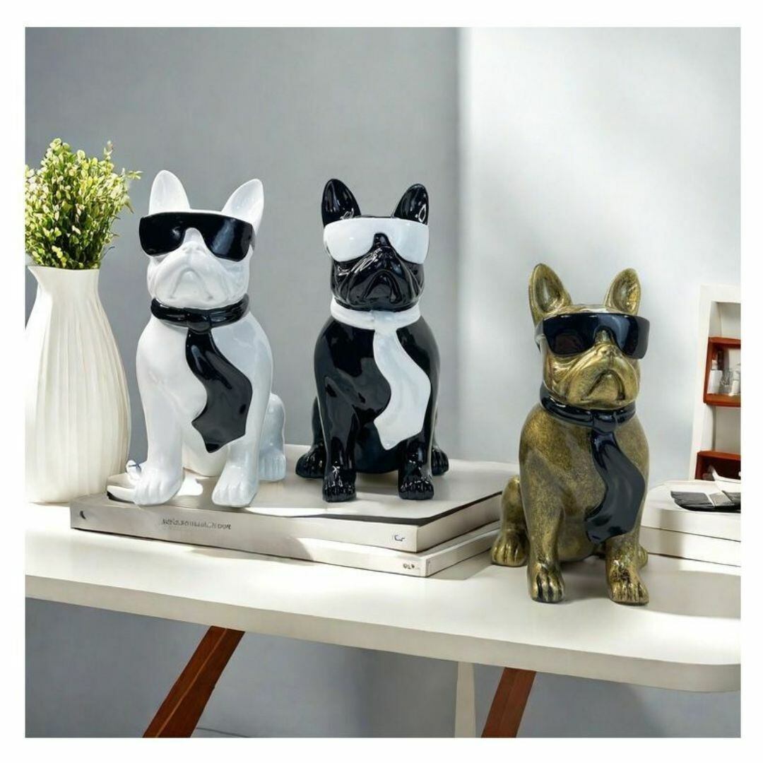 置物 オブジェ マフラーをまいたブルドック サングラス おすわり イヌ かわいい カラーバリエーション 白 おしゃれ モダン 玄関 動物 リビング 樹脂 レジン 装飾 プレゼント ギフト