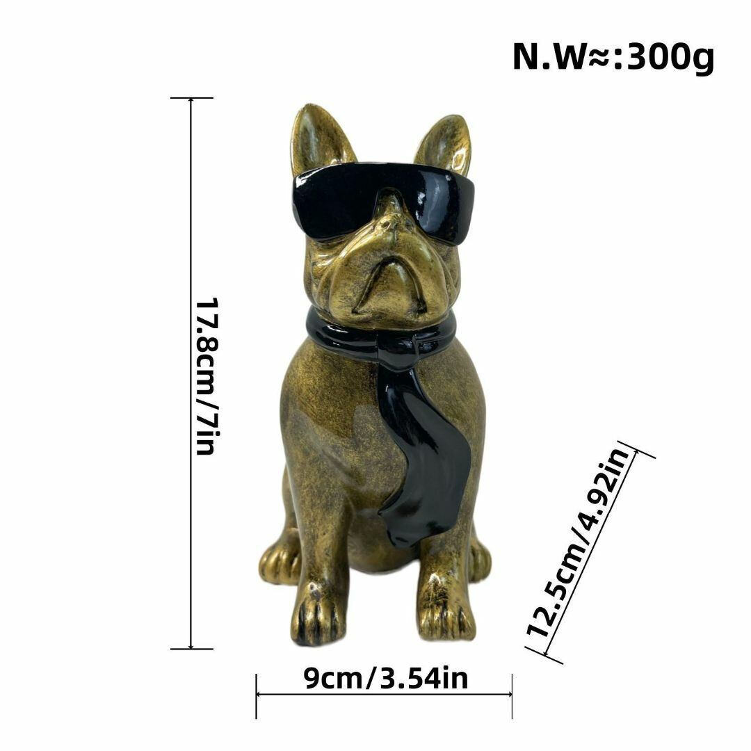 こちらの置物は、マフラーを巻いてサングラスをかけたブルドッグをモチーフにしたユニークなオブジェです。おすわり姿がかわいらしく、動物好きにはたまらないデザインです。黒、白、銅のカラーバリエーションからお選びいただけ、どの色もおしゃれでモダンな印象を与えます。玄関やリビングのインテリアとしてはもちろん、プレゼントやギフトにも最適な一品です。樹脂製で丈夫かつ繊細なつくりが魅力で、空間に個性的なアクセントを加えます。