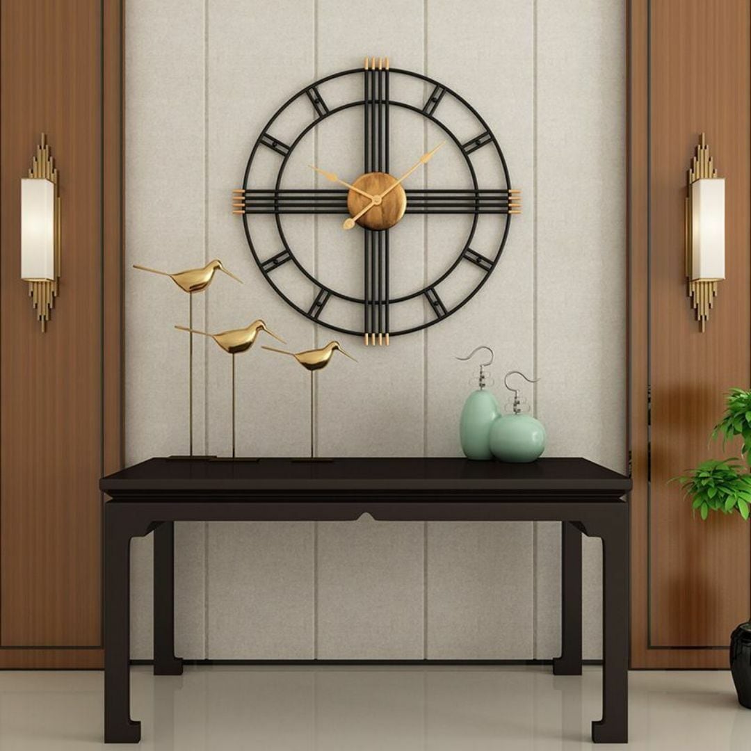 壁時計 ウォールクロック 丸型 60cm 北欧 クロスライン 黒 ブラック 金の秒針 おしゃれ 掛け時計 壁掛け時計 ファッション モダン 静音 アナログ アンティーク クール シンプル リビングルーム 寝室 書斎 オフィス