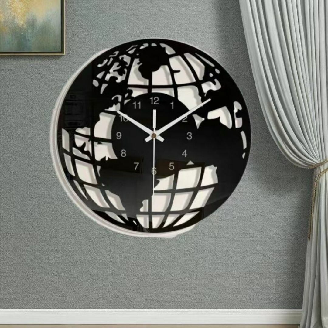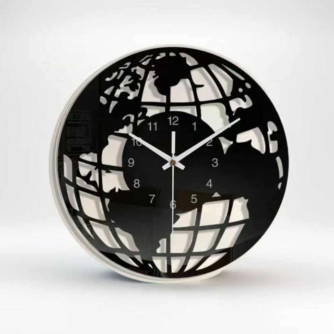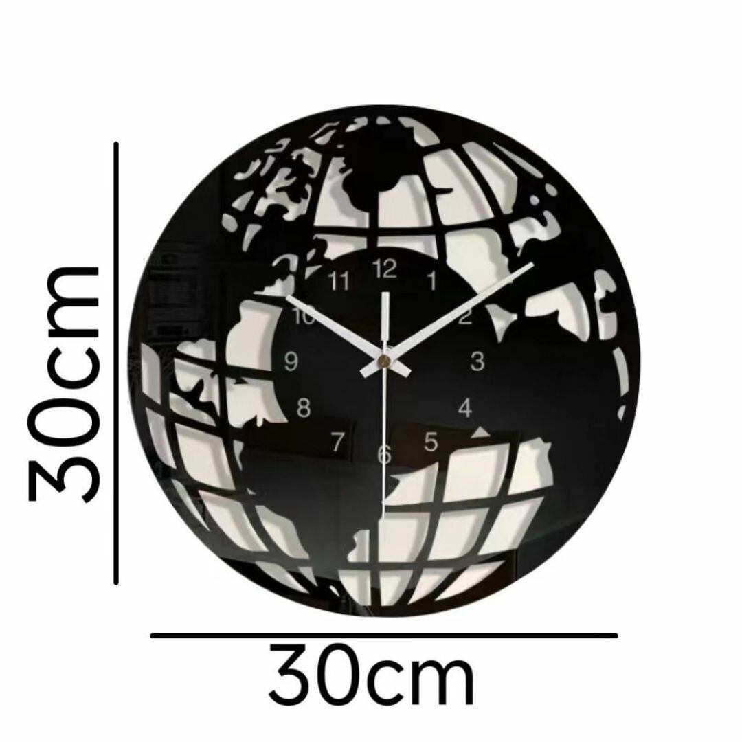壁時計 ウォールクロック 丸型 30cm 世界地図風 黒 ブラック 白の秒針 おしゃれ 掛け時計 壁掛け時計 ファッション モダン 静音 アナログ アンティーク クール シンプル リビングルーム 寝室 書斎 オフィス 防水