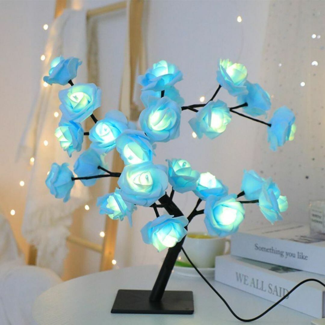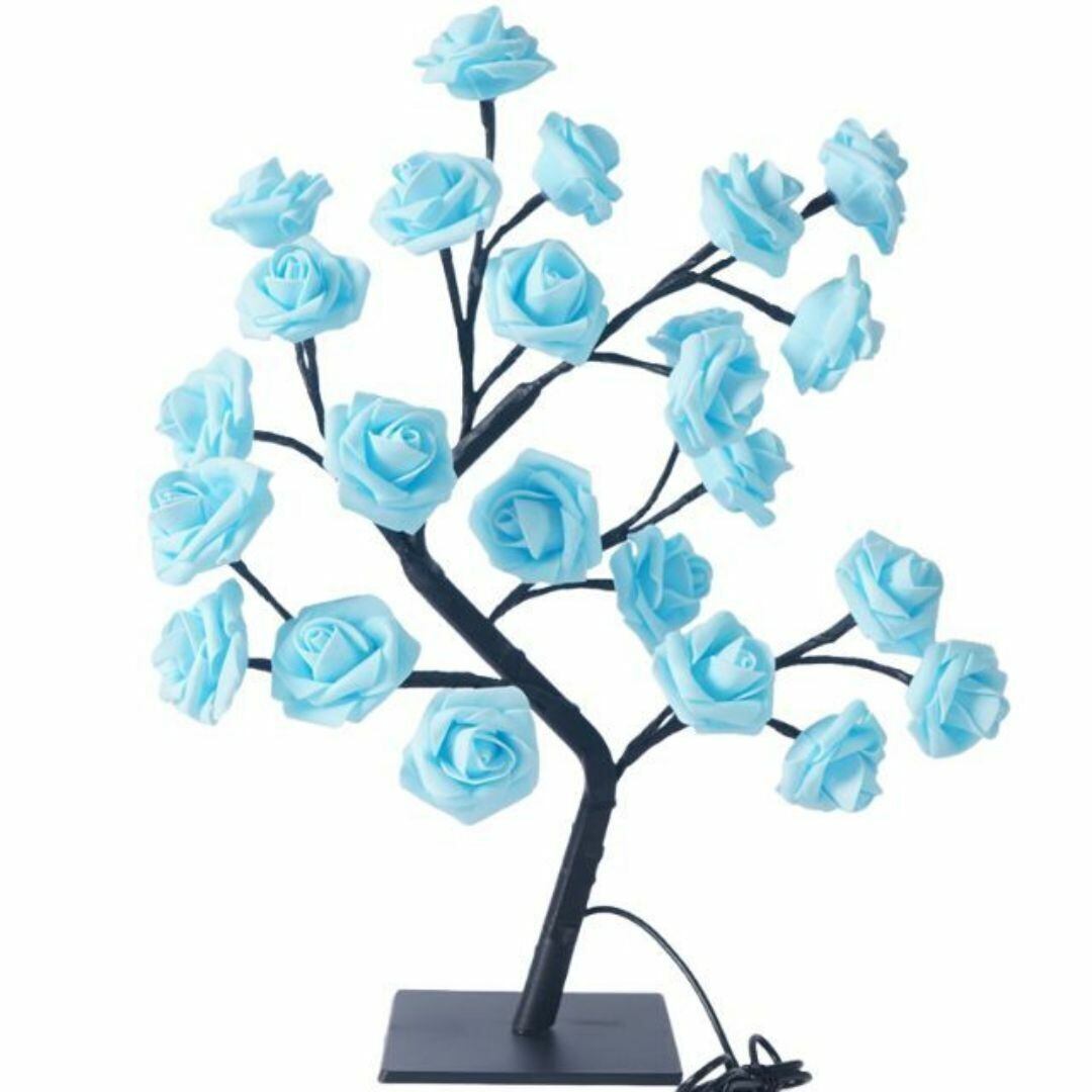 テーブルライト 置物 オブジェ LED ツリー 水色の薔薇の木 かわいい 木のカラーバリエーション ブラック ホワイト 美しい モダン おしゃれ 玄関 装飾 癒し プレゼント ギフト オーナメント USB充電