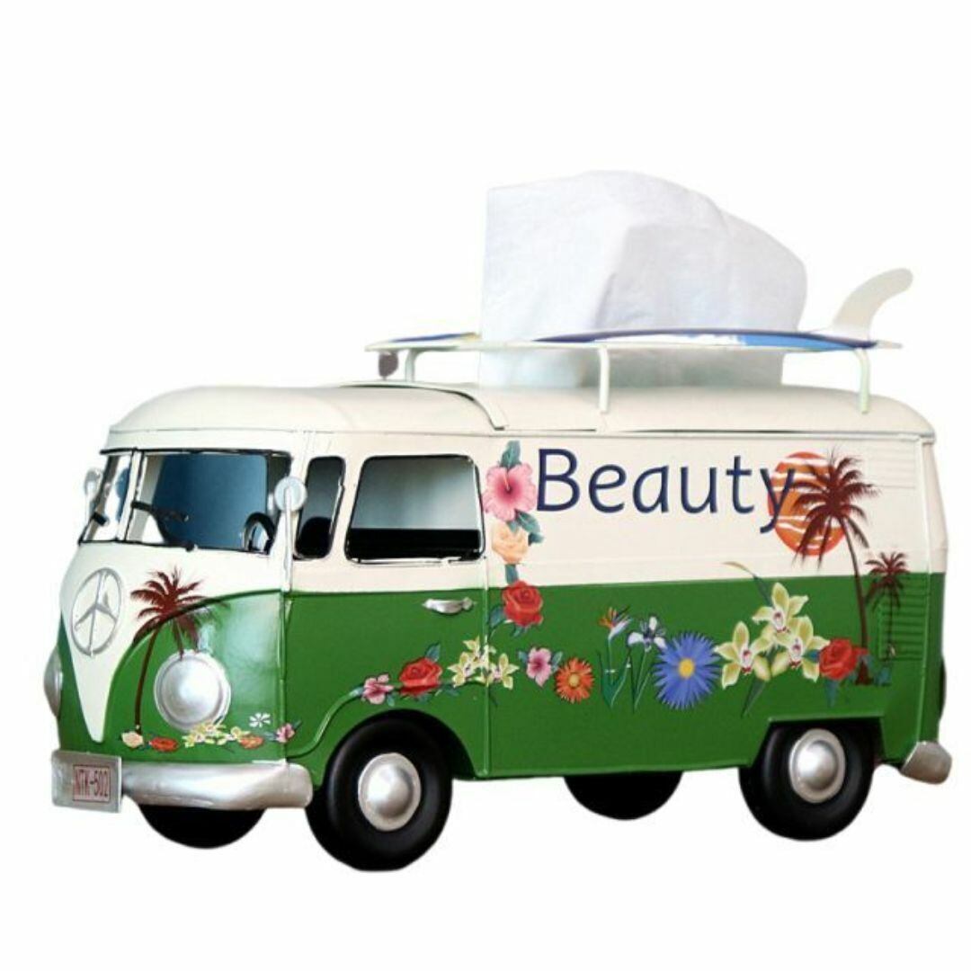 こちらのティッシュボックスは、ワゴン車をモチーフにしたかわいい置物です。車体に花などの可愛い装飾が施され、おしゃれで魅力的なティッシュケースとしてお使いいただけます。車内収納やリビング、寝室でのインテリアアイテムとしてもぴったりです。鉄板素材を使用しており、耐久性も兼ね備えています。イエロー、レッド、ピンク、ブルー、グリーン、ブラックの豊富なカラーバリエーションからお好みの一台をお選びいただけます。プレゼントやギフトにも最適なアイテムです。