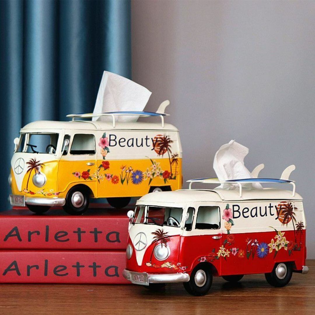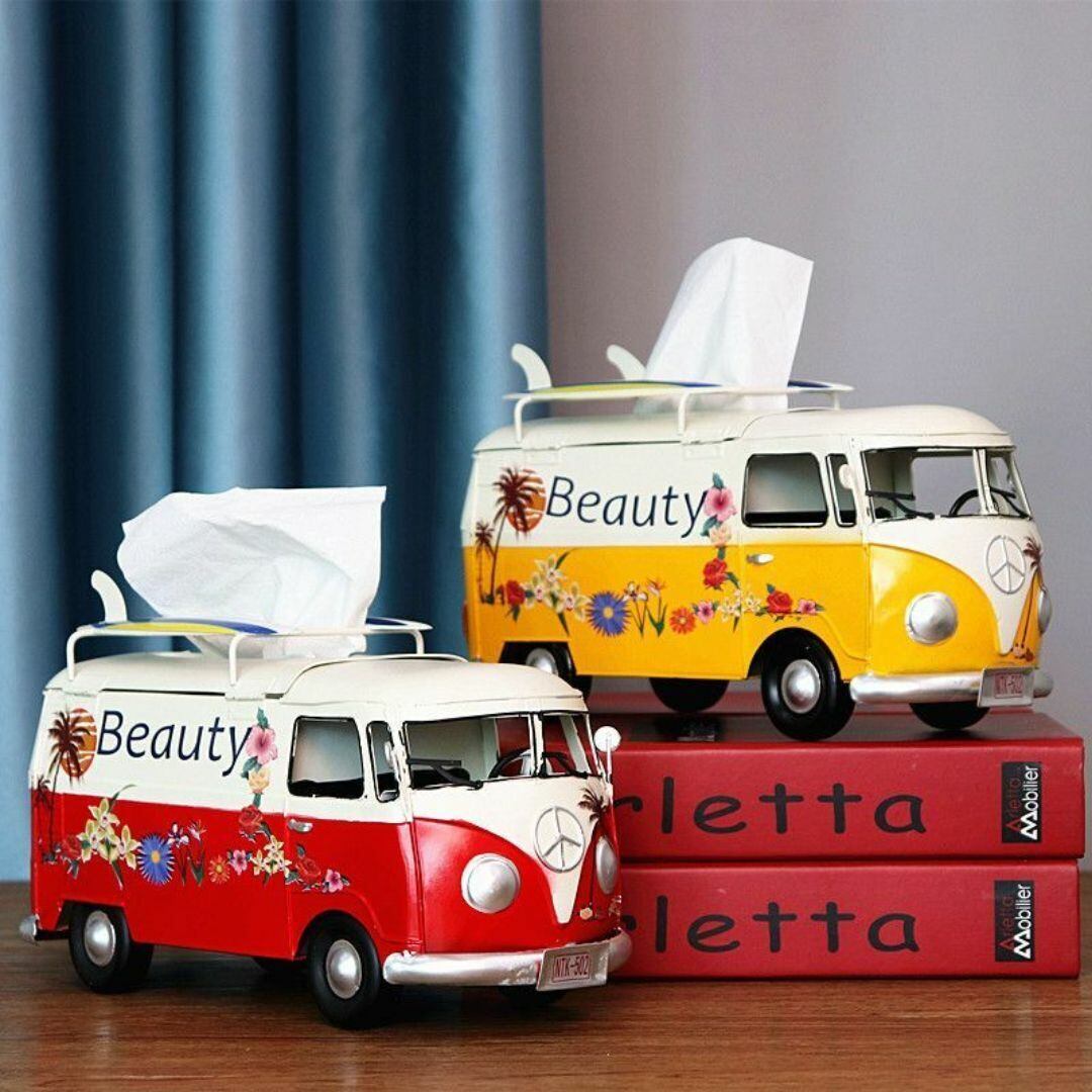 ティッシュボックス 車 ワゴン車 置物 コンテナ 花などの可愛い装飾 おしゃれ ティッシュケース 車内収納 鉄板 リビング 寝室 カラーバリエーション イエロー レッド ピンク ブルー グリーン ブラック インテリア