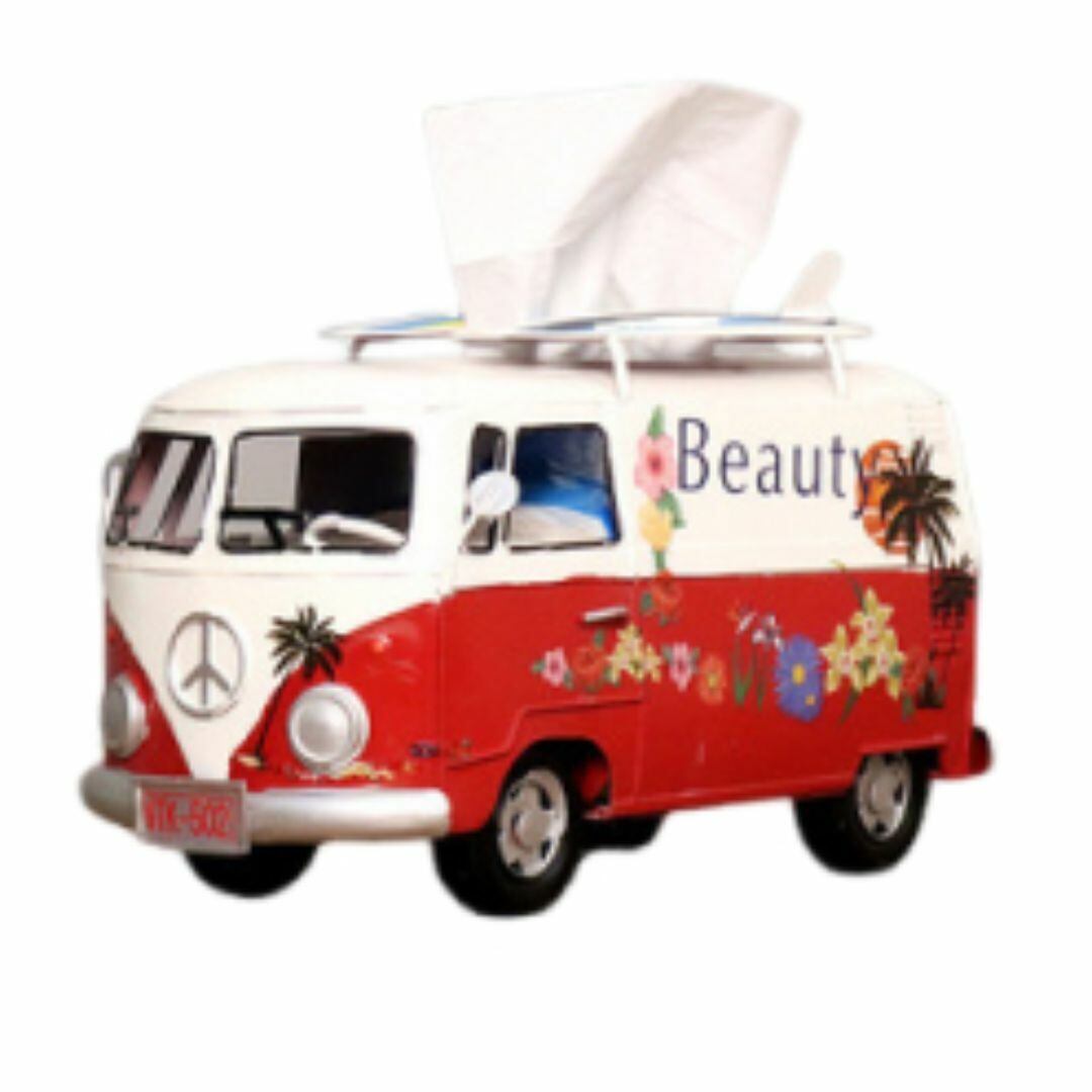 ティッシュボックス 車 ワゴン車 置物 コンテナ 花などの可愛い装飾 おしゃれ ティッシュケース 車内収納 鉄板 リビング 寝室 カラーバリエーション イエロー レッド ピンク ブルー グリーン ネイビー インテリア 長さ26cm