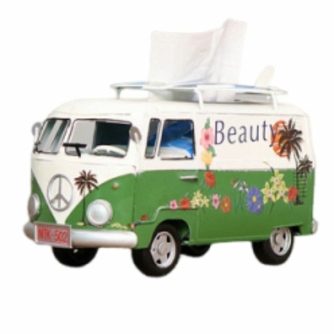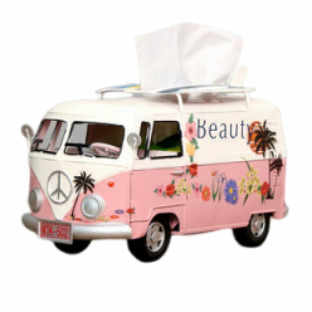 こちらのティッシュボックスは、ワゴン車をモチーフにしたかわいい置物です。車体に花などの可愛い装飾が施され、おしゃれで魅力的なティッシュケースとしてお使いいただけます。車内収納やリビング、寝室でのインテリアアイテムとしてもぴったりです。鉄板素材を使用しており、耐久性も兼ね備えています。イエロー、レッド、ピンク、ブルー、グリーン、ネイビーの豊富なカラーバリエーションからお好みの一台をお選びいただけます。プレゼントやギフトにも最適なアイテムです。