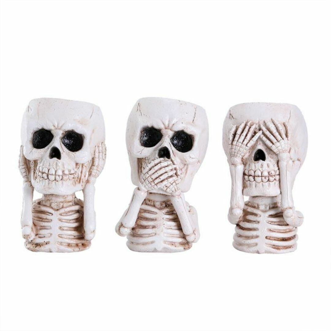 置物 花瓶 スカル ユニークな骸骨 かわいい 3体セット おしゃれ 樹脂 ハロウィン イベント ギフト ペン立て 小物入れ 多機能 ホワイト リアル