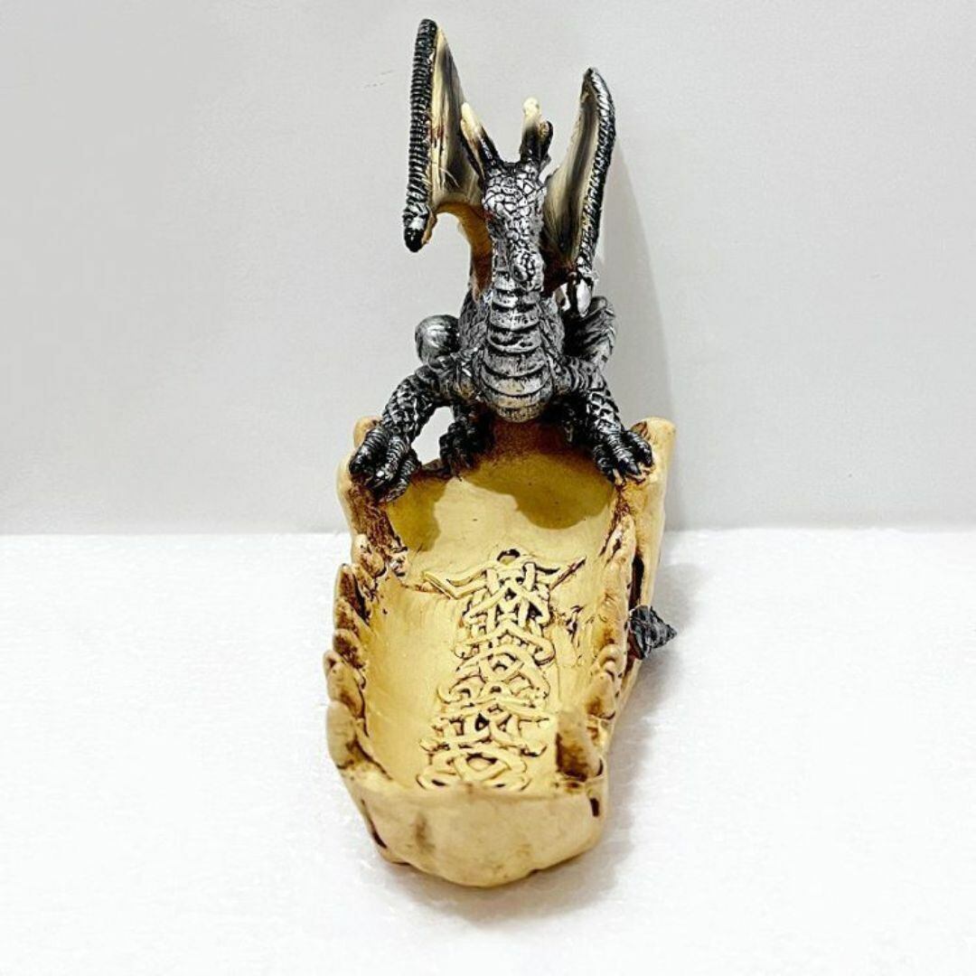置物 オブジェ 彫刻 小物入れ かっこいい かわいい 頭蓋骨に座る龍 ドラゴン 下あご部分 収納 荘厳 リアル 独創的 インテリア 樹脂 おしゃれ リビング 玄関