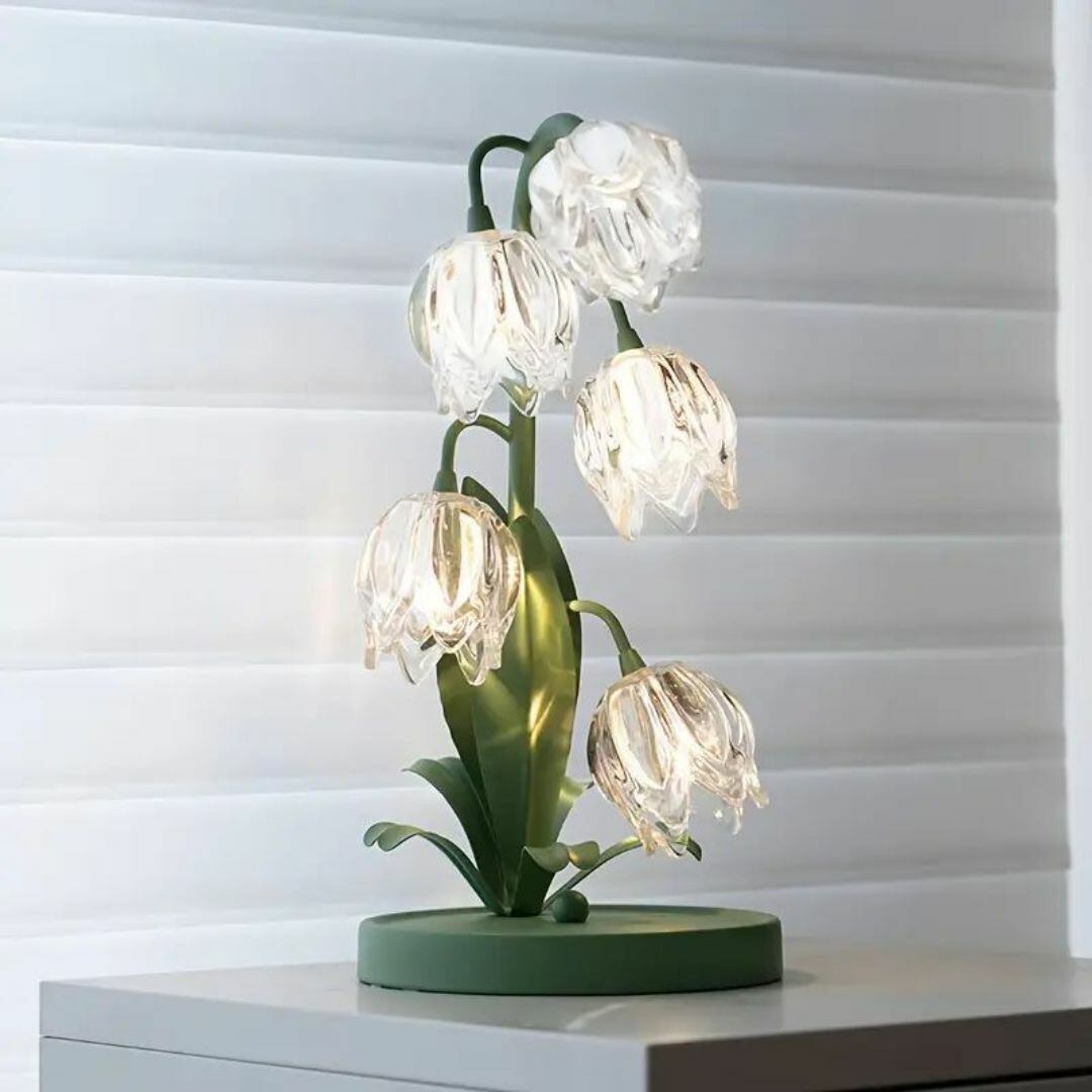 デスクライト 照明 インテリア 透明 クリア 頭を下げたチューリップ かわいい おしゃれ LED 花 USB供給 寝室 リビング 玄関 スタンド 北欧 目に優しい 持ち運び モダン