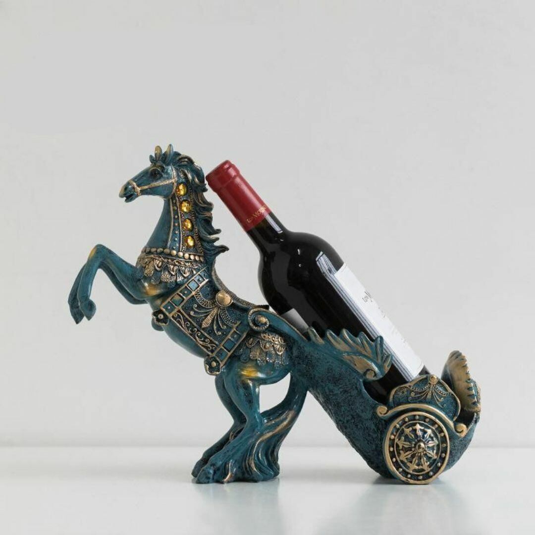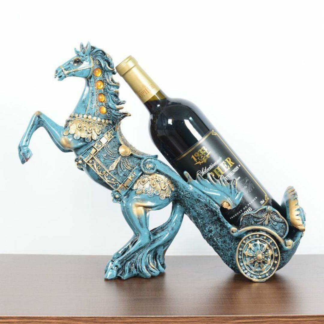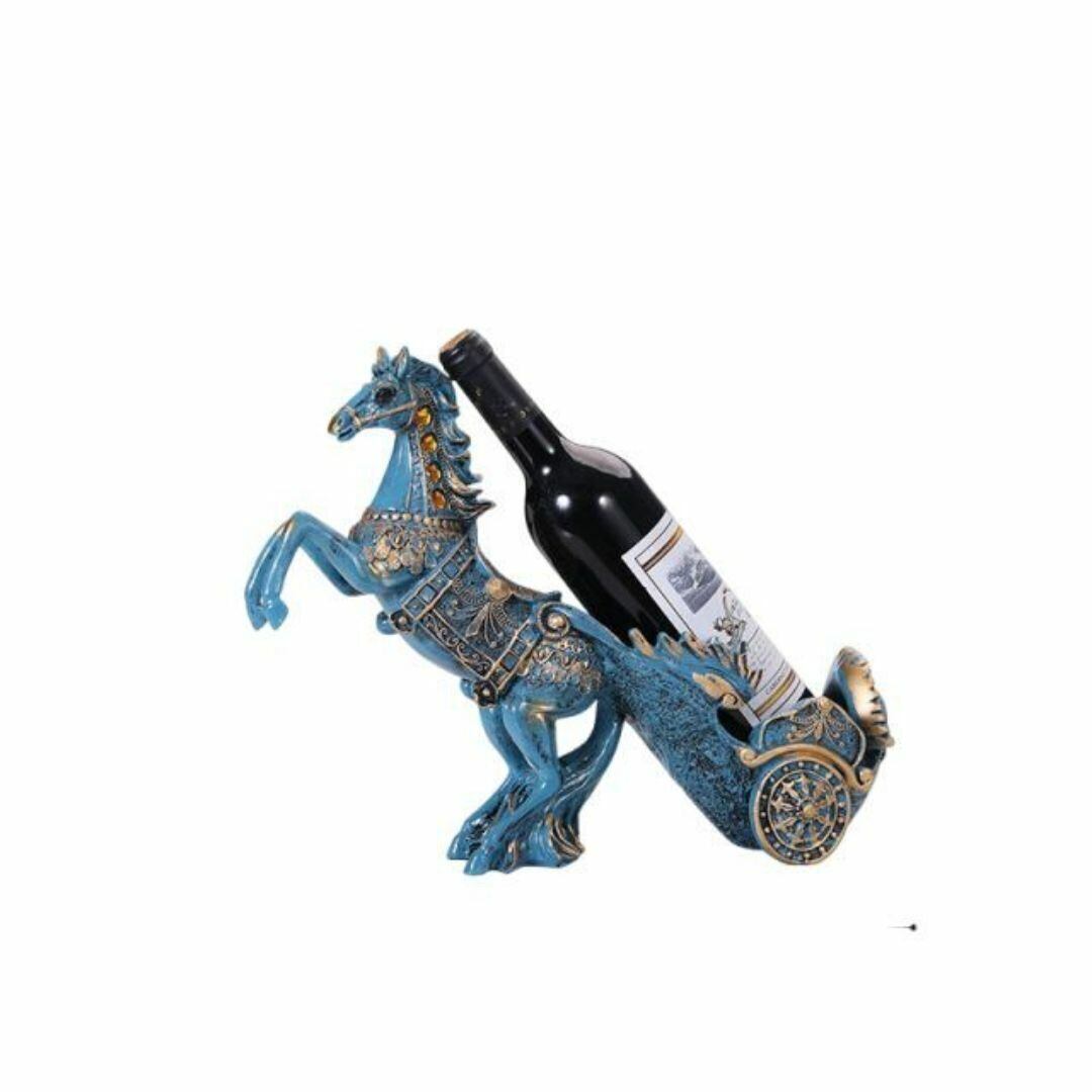 ワインラック ワインボトルホルダー 置物 オブジェ 動物 荷車を引く馬 おしゃれ かわいい スタイリッシュ 冷蔵庫 ブルー 青 馬 ホース 実用的 リビング キッチン