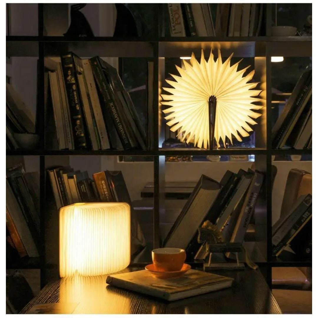 本の形をしたユニークでおしゃれなデスクライト。折りたたみ可能で自由自在に開閉でき、使い方次第でさまざまな光の演出が楽しめます。LEDライト搭載で目に優しく、USB供給式で持ち運びも簡単。寝室やリビング、玄関などにぴったりのインテリア照明です。ウッドカラーのナチュラルなデザインが北欧風のモダンな空間にもマッチ。実用性とデザイン性を兼ね備えた、スタイリッシュなテーブルライトです。