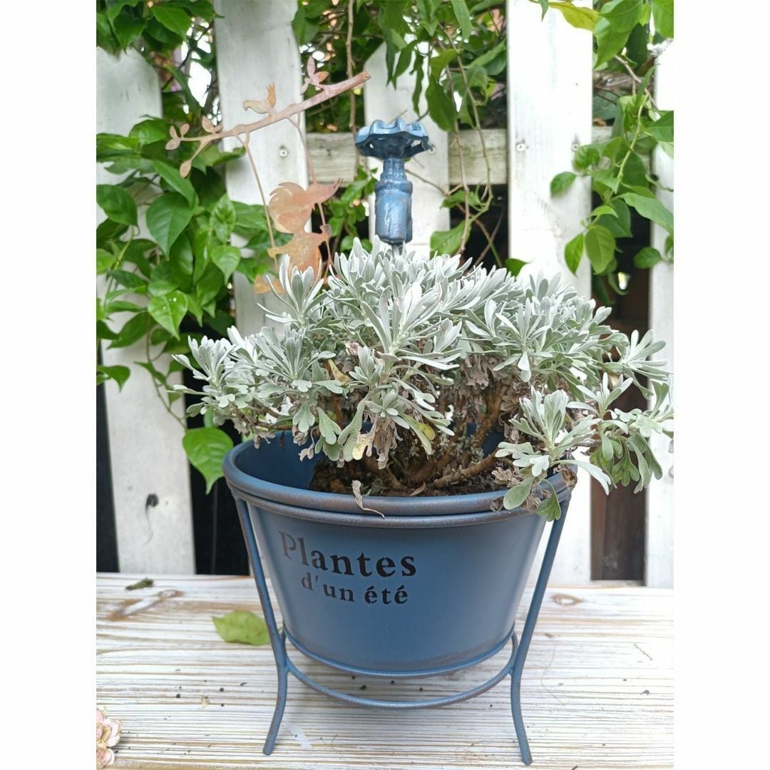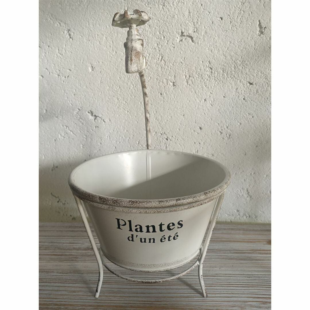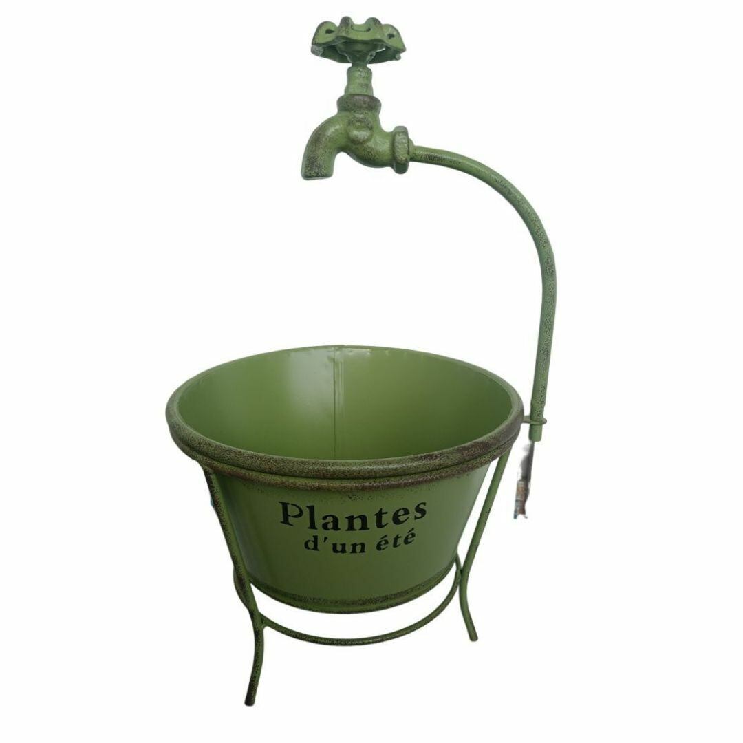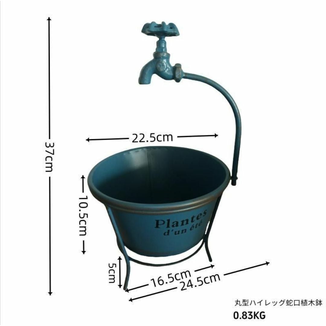 この植木鉢は、庭や花壇にぴったりのおしゃれなデザインです。鉄製で耐久性があり、屋外でも長持ちします。アクセントとして蛇口の模型が付いており、可愛らしさを演出!カラーバリエーションはブルー、ホワイト、グリーンの3色展開で、お好みに合わせてお選びいただけます。ガーデニング愛好者必見のアイテムです。